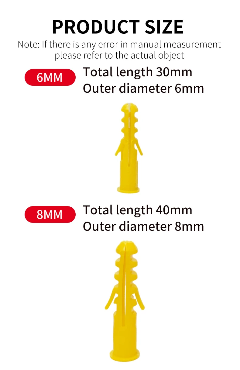 Пластиковый анкер M6/M8/M10/M12, 20/30/50 шт
