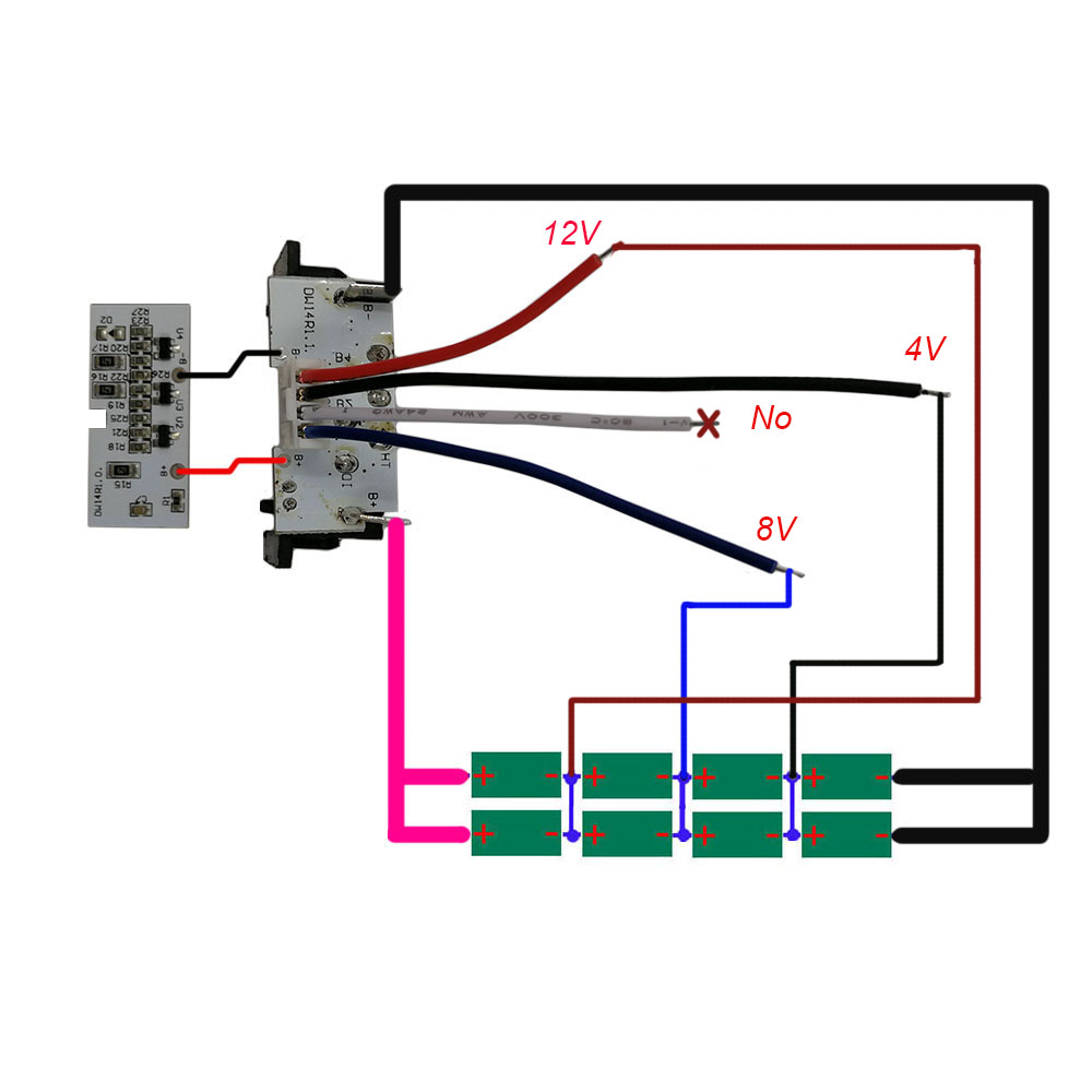 2. Если старая батарея отремонтирована, проверьте напряжение на обоих концах каждой ячейки. Если напряжение отличается, зарядите каждую ячейку до одного и того же значения напряжения.