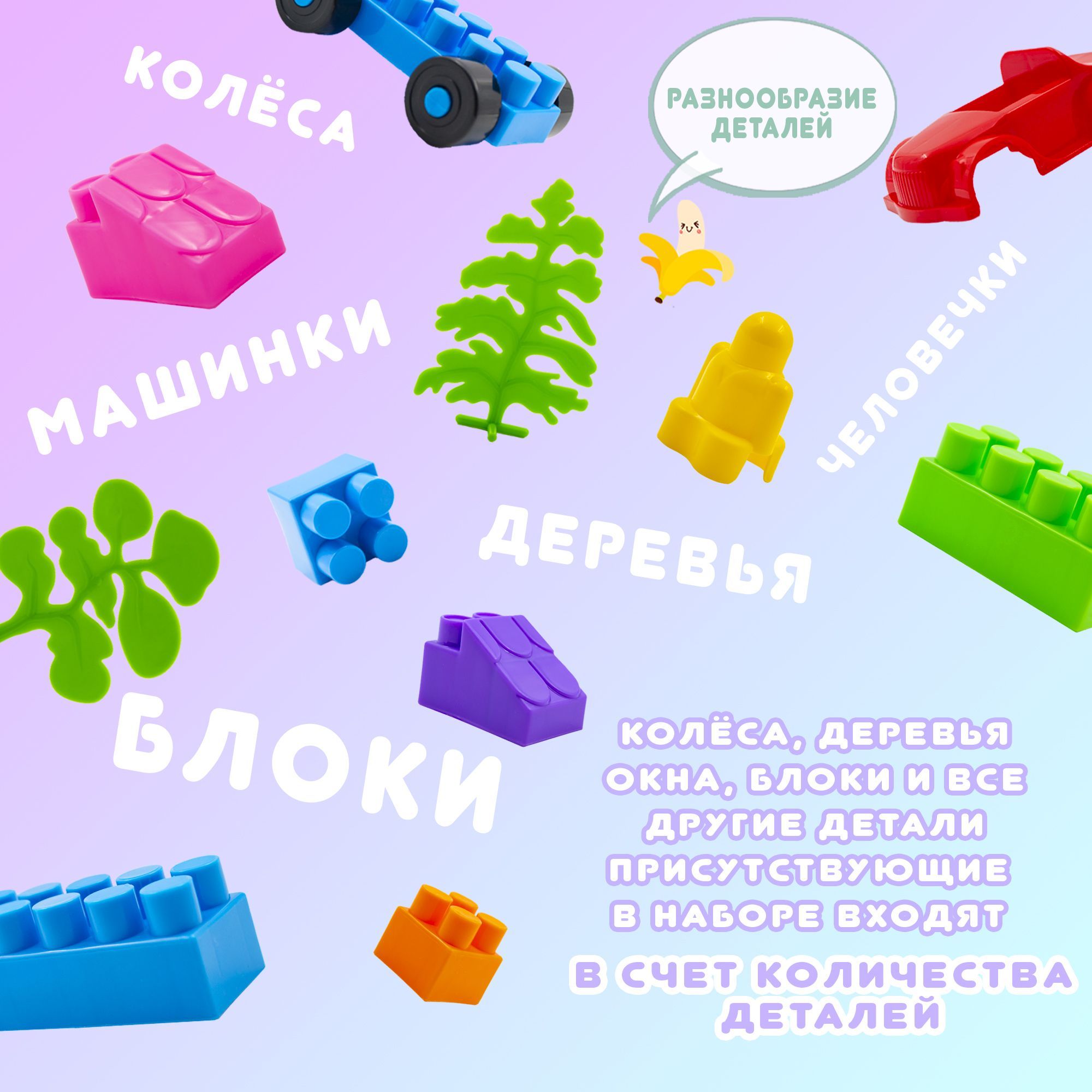 Описание: Конструктор для детей Комби Блок 200 деталей Вы и без нас знаете, что конструктор это самая популярная игрушка для детей. Помимо удовольствия от игры, ребенок развивает моторику, фантазию, усидчивость, учит цвета и тренирует многие другие навыки. Не забывайте участвовать в процессе сборки, чтобы ребенок учился находить общий язык и работать в команде.На любой вкус200 разноцветных деталей с размерами от 3 см до 5 см не оставят равнодушными ни одного малыша (иногда и родителей:)) В состав набора входят: блоки, машинки, деревья, окна, двери и человечки. Дайте волю воображению - стройте дома, гаражи, животных, самолеты, машины, роботов и многое другое. ВАЖНО - колеса и другие ЛЮБЫЕ детали входят в счёт количества деталейБезопасен Конструктор Комби Блок производится в России. Изготовлен из безопасных материалов и имеет все необходимые сертификаты качества – можете быть спокойны. Стройте, развивайтесь, изучайте, тренируйтесь и просто получайте удовольствие от игры !