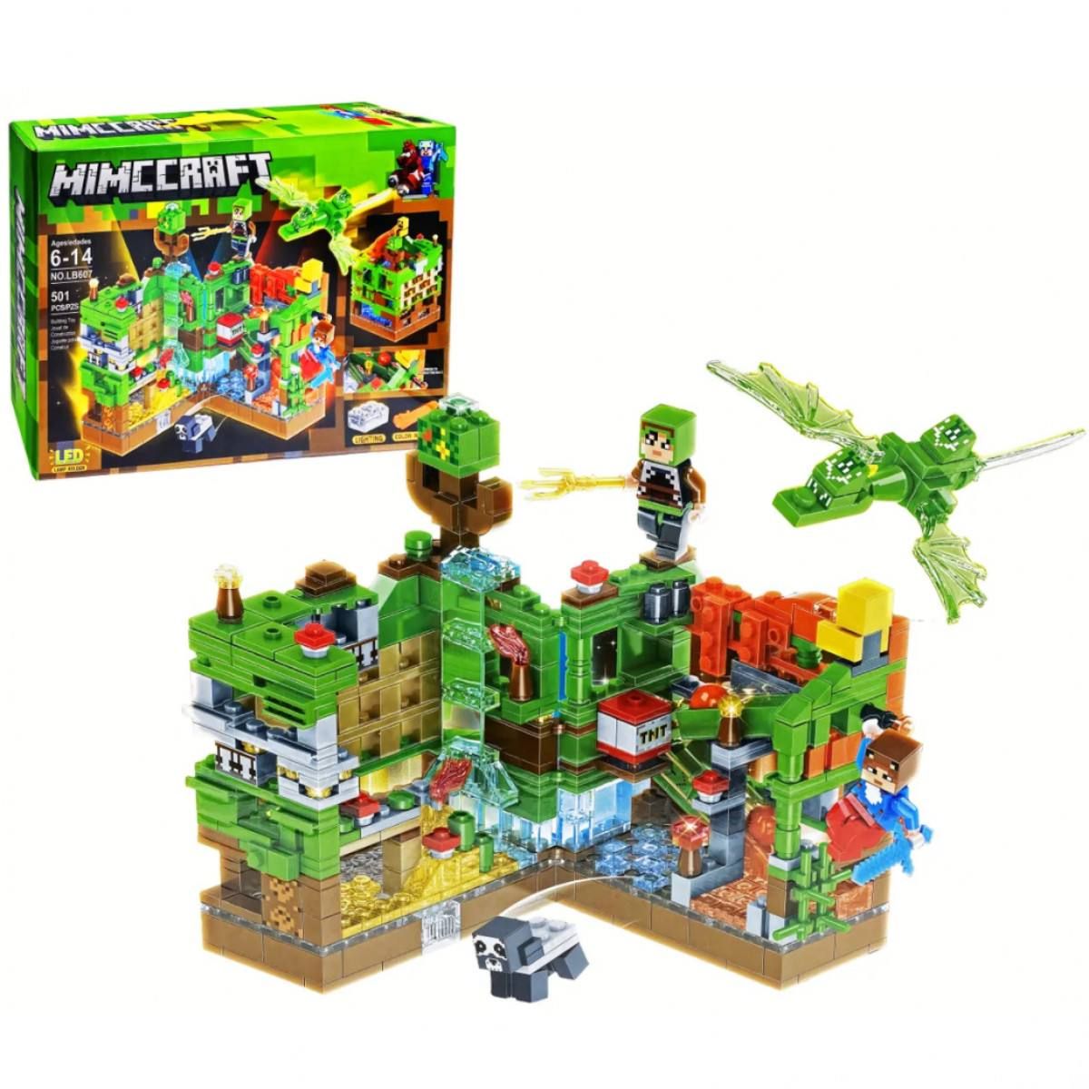 Пластиковый конструктор Minecraft "Начало истории", 501 деталь, с подсветкой, дракон зелёной крепости