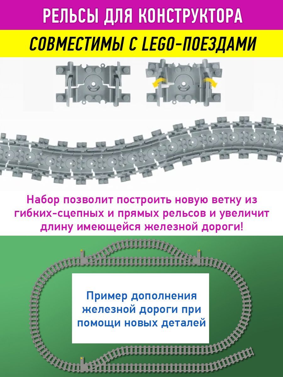 Пластиковый конструктор "Рельсы - гибкие и прямые пути" / Дополнительные детали к набору "Железная дорога"