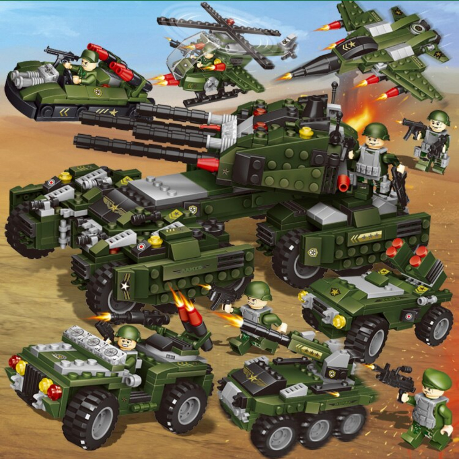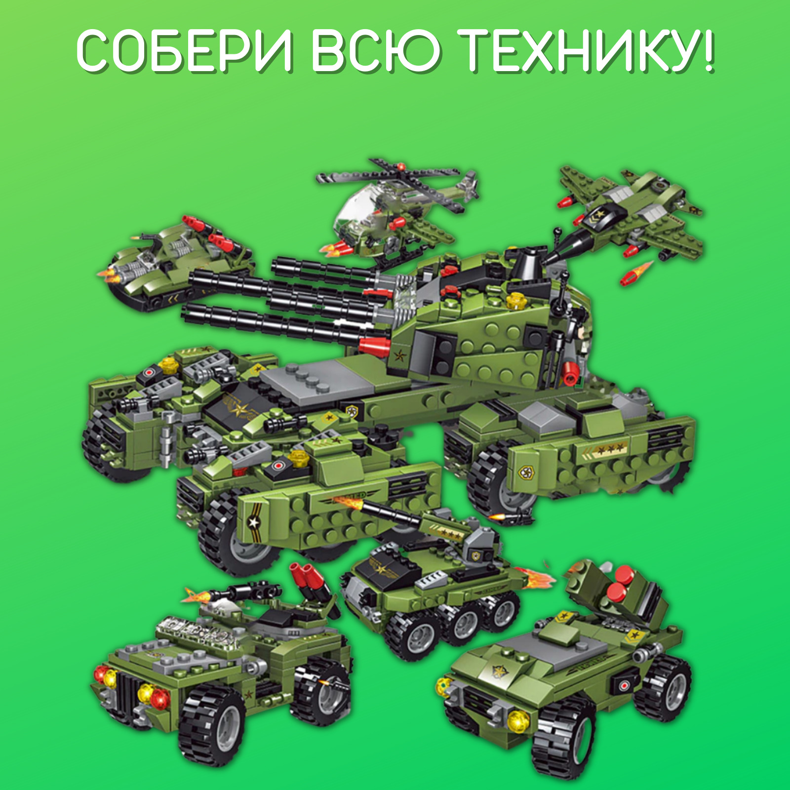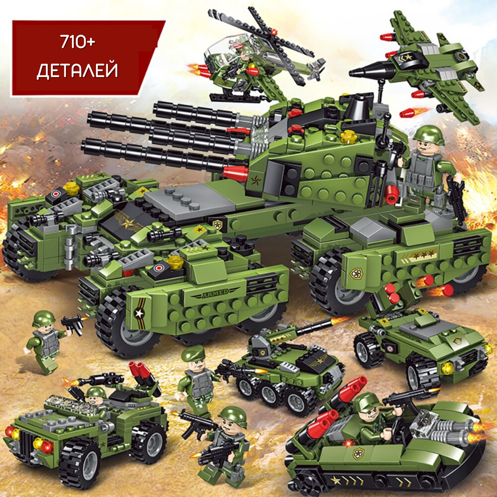Пластиковый конструктор "Военный танк 6 в 1" 710+ дет. , Военный вертолет , БТР , Истребитель , city , конструктор армия