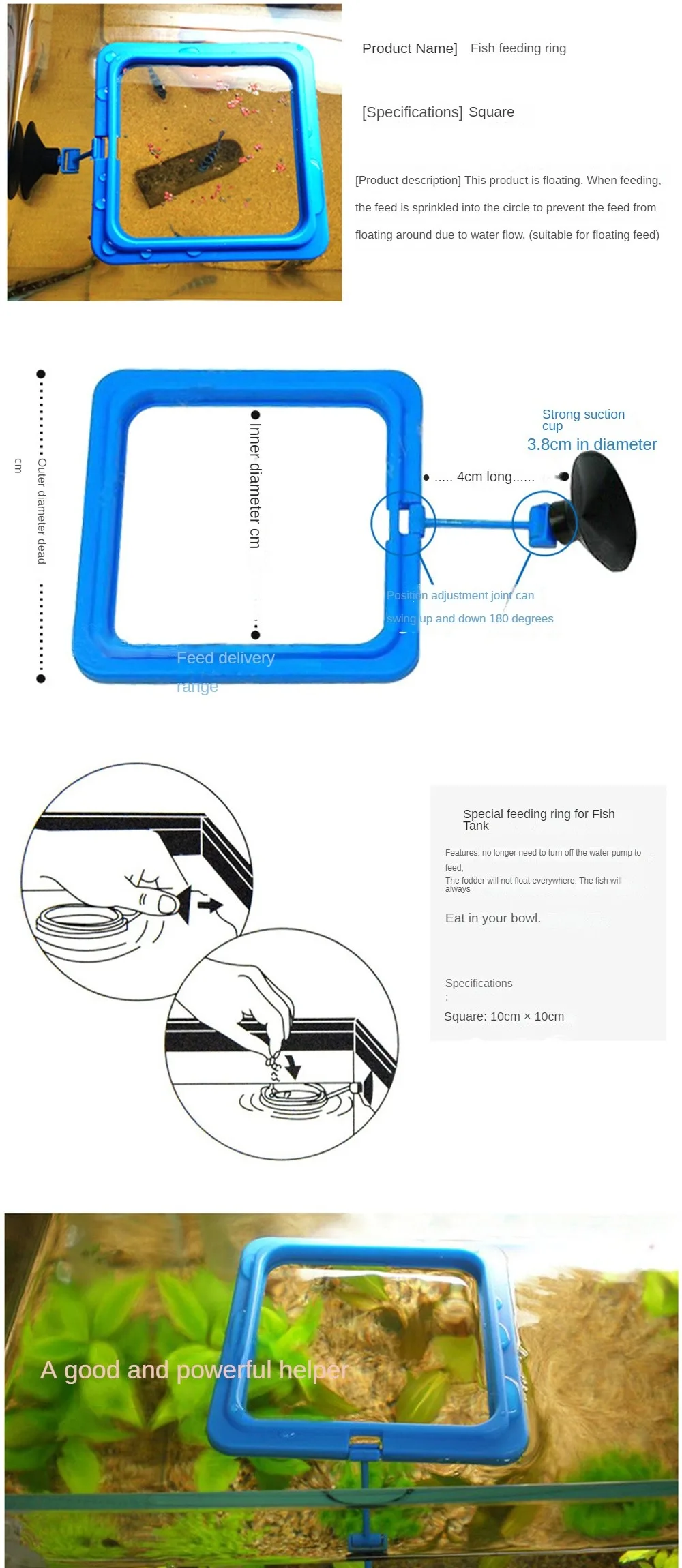 1. Кормовое кольцо оснащено присосками и пластиковыми плавающими кольцами, чтобы держать еду плавающей и помогает предотвратить попадание пищи в фильтр.