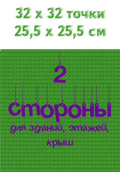 Пластина 2-сторонняя строительная совместима с Лего 32x32 точки, 25,5 x 25,5 см Зеленая