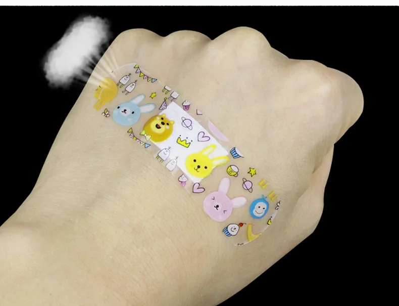 Пластыри для ран прозрачные водостойкие с мультяшным рисунком, 120 шт.