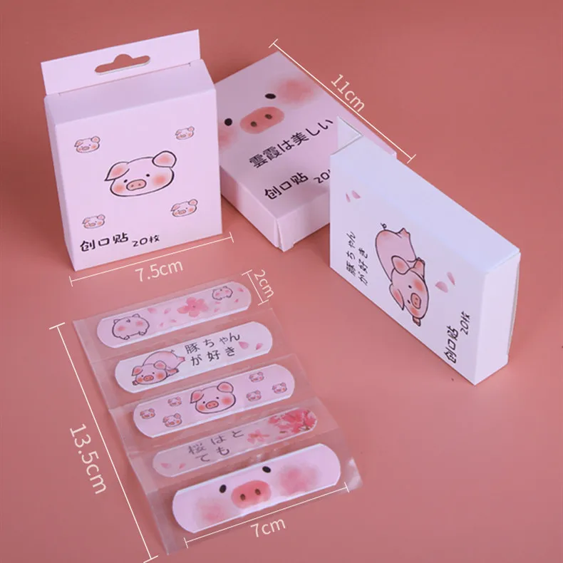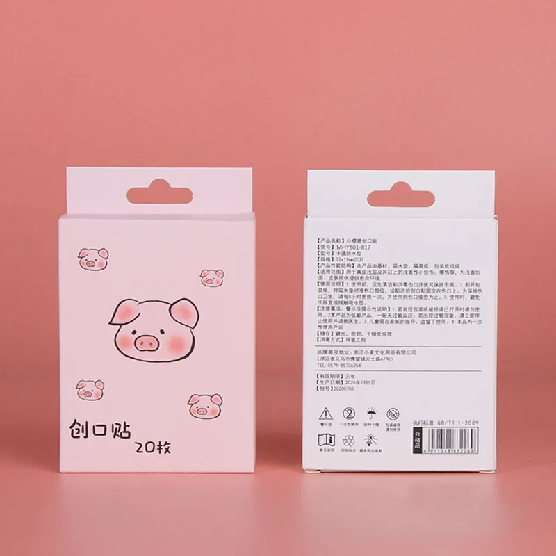 Описание: 20 шт/коробка водонепроницаемые повязки для первой помощи гемостаз группы помощи милые наклейки из мультфильмов животные Свинья штукатурка ранка аварийный набор