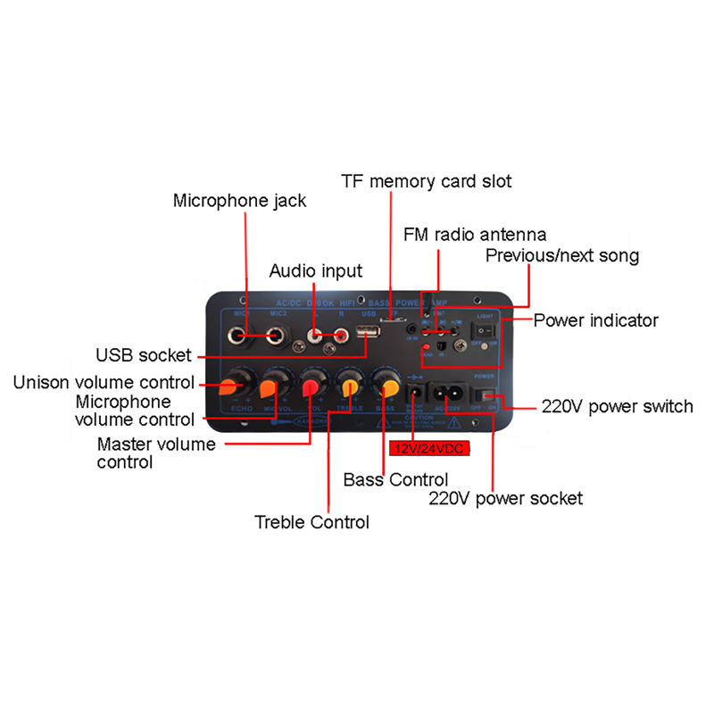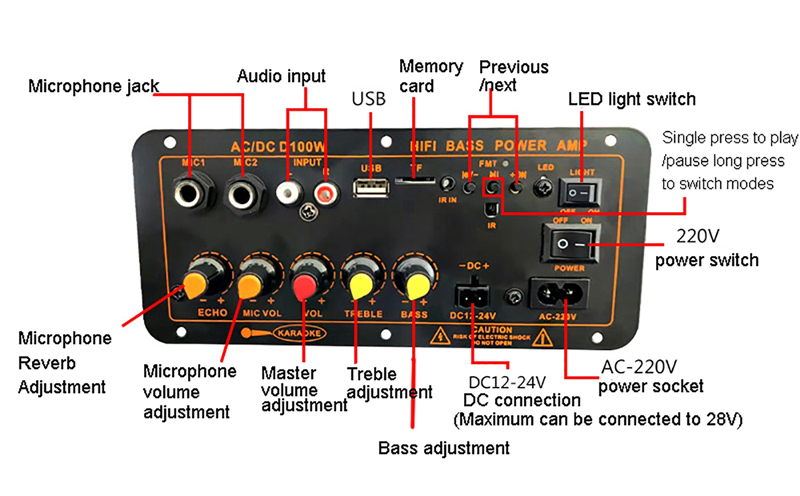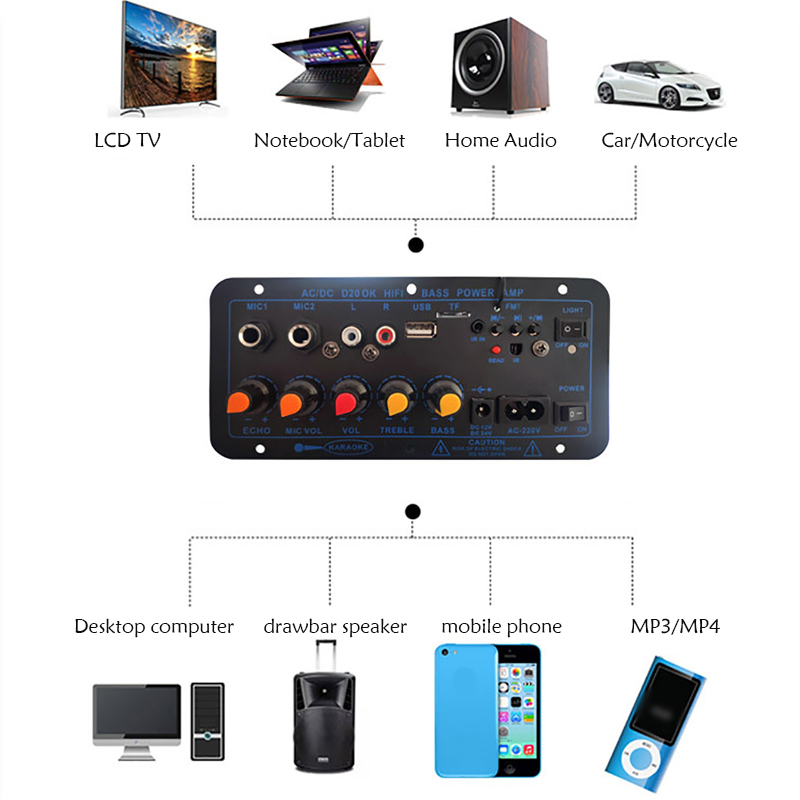 * Поддерживает Проводные микрофоны и платы беспроводных микрофонов (не входят в комплект).