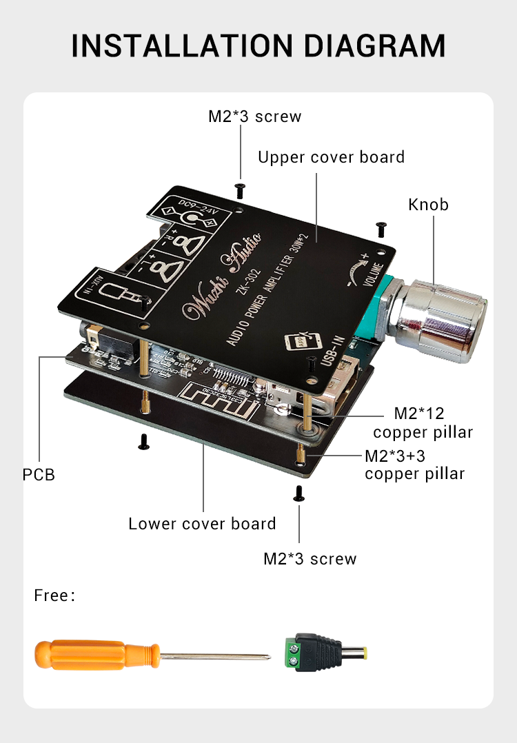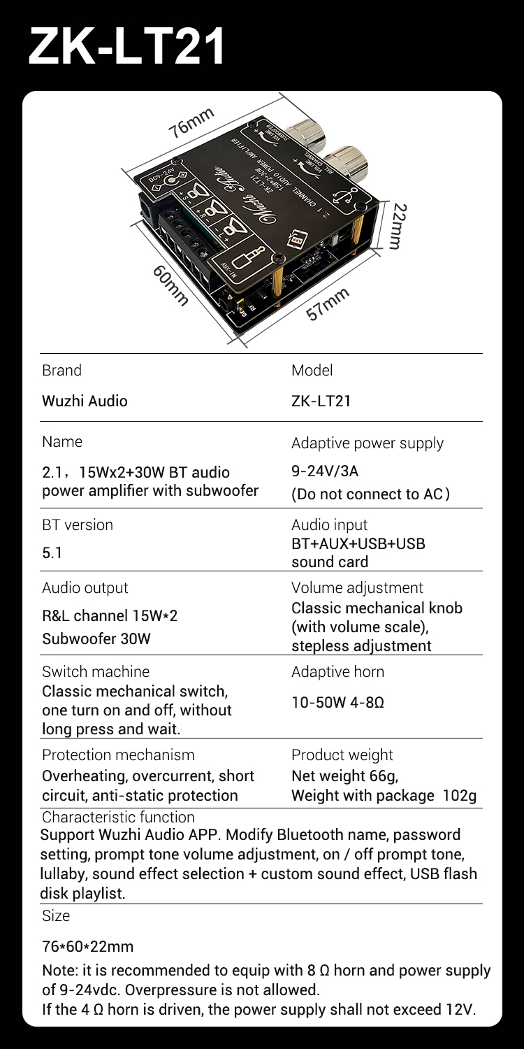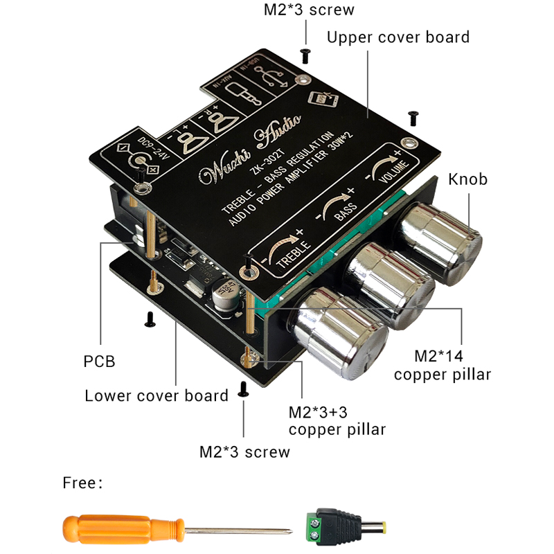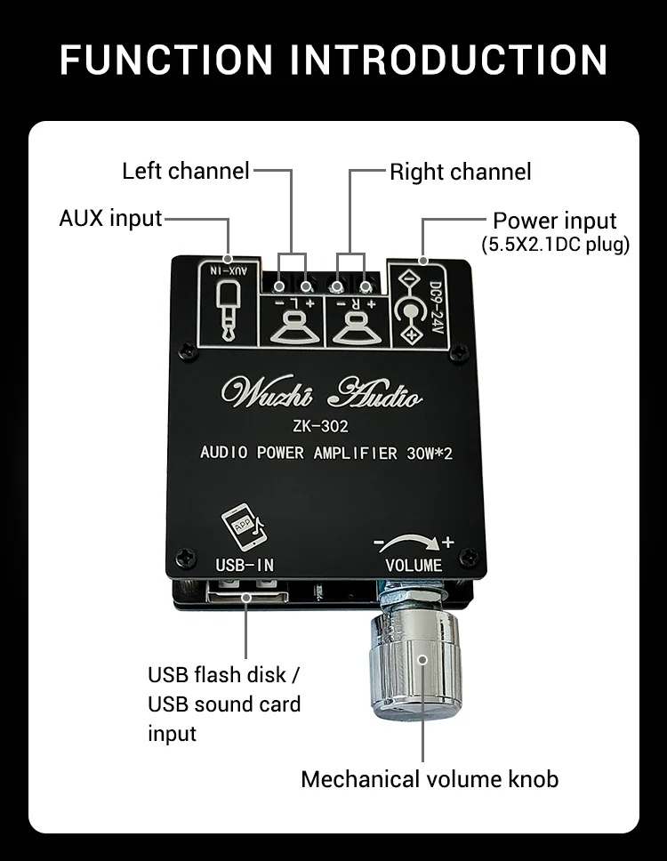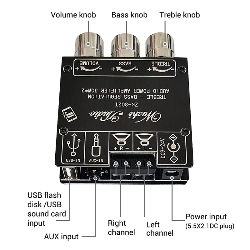 Плата цифрового усилителя мощности AUX 2,1 CH