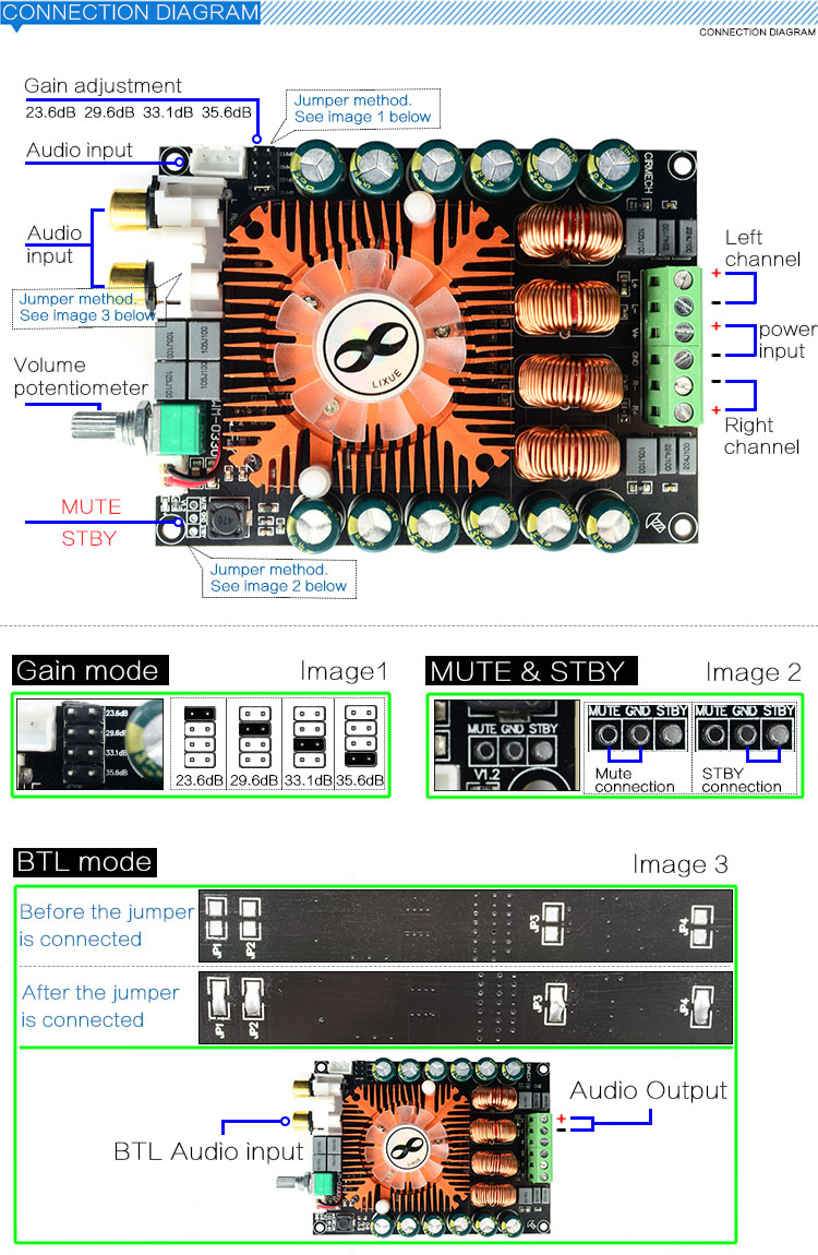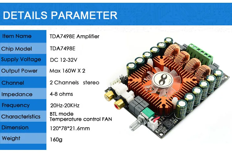 Плата цифрового усилителя мощности CIRMECH TDA7498E 2,0 HIFI stereo 160 Вт * 2, поддержка BTL220W DC12V-36V