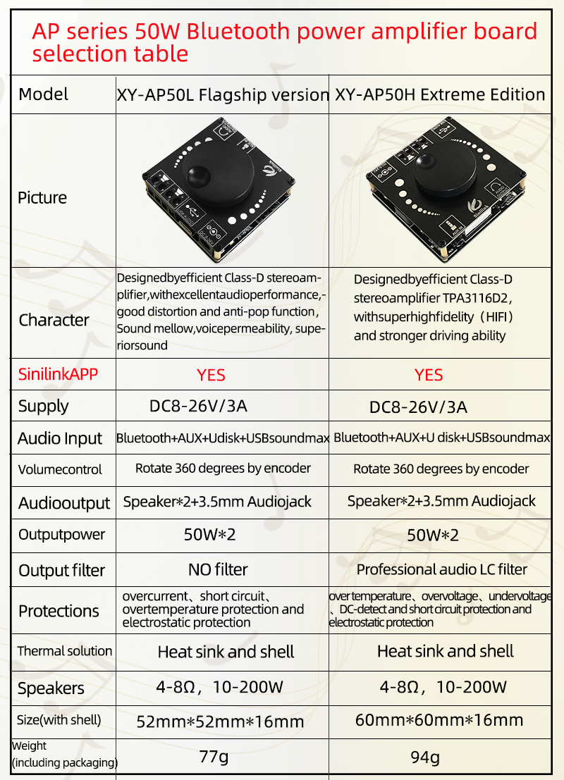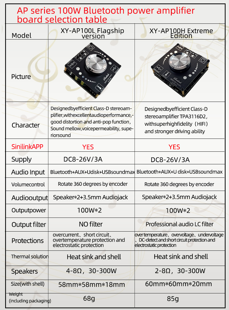 Есть две версии этого продукта. Основное отличие заключается в разнице используемого чипа усилителя, разнице выходного фильтра или нет, разнице в размере.