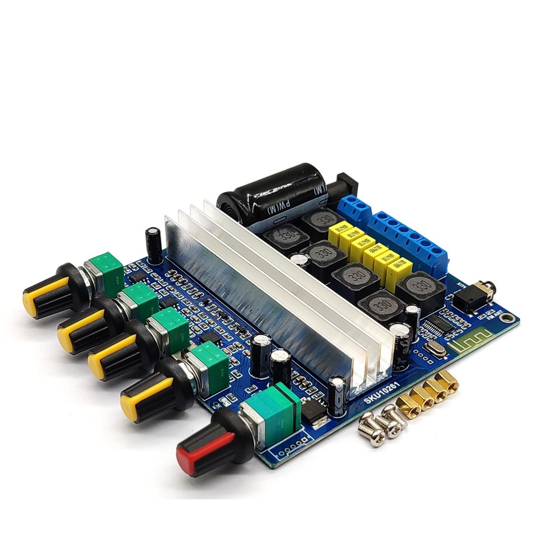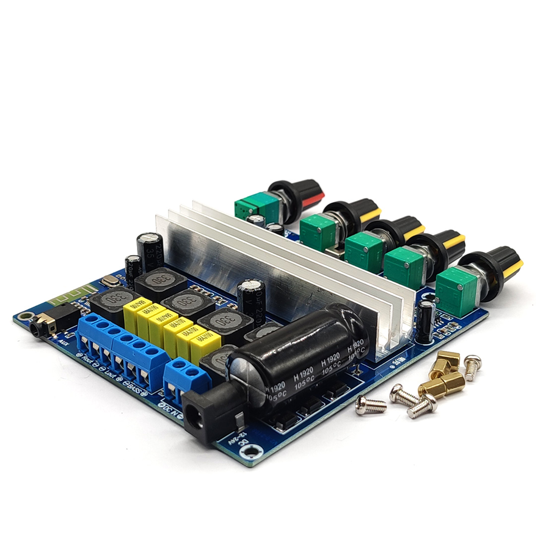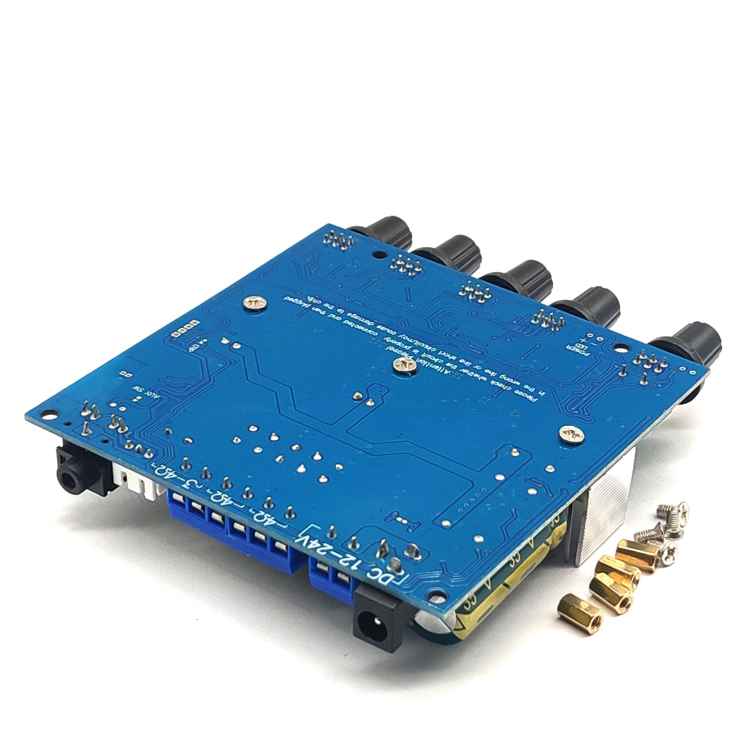 Поддержка Bluetooth аудио приема, внешний аудио входной интерфейс, с преусилителем, обработка басов кроссовера; Громкость басов, частота басов, левый и правый канал громкости, высокие частоты, переключатель управления функциями/общий объем, 5 регулировочных потенциометров.