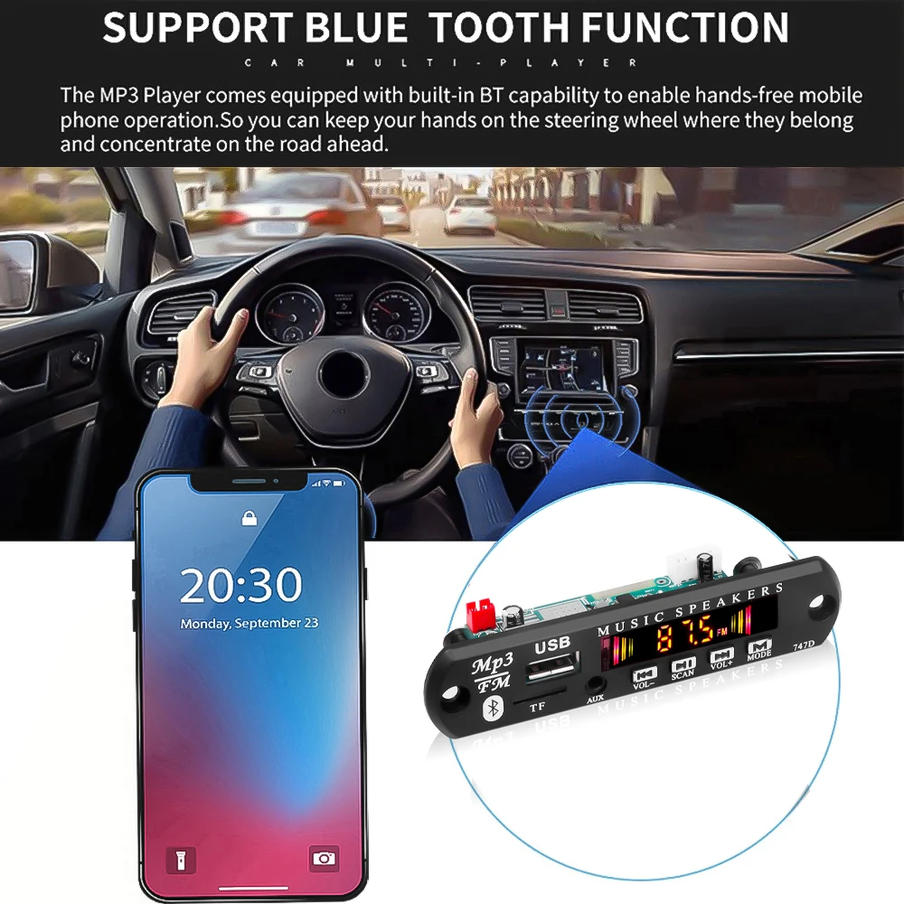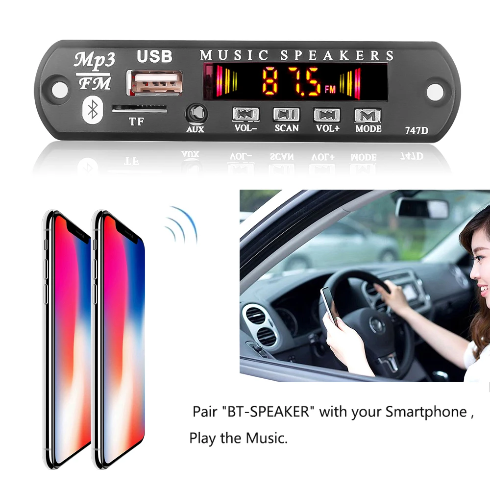 Плата декодера MP3-плеера, 5 В, 12 В, Bluetooth 5,0, 6 Вт, усилитель, автомобильный FM-радио, поддержка FM, TF, USB, AUX, рекордеры