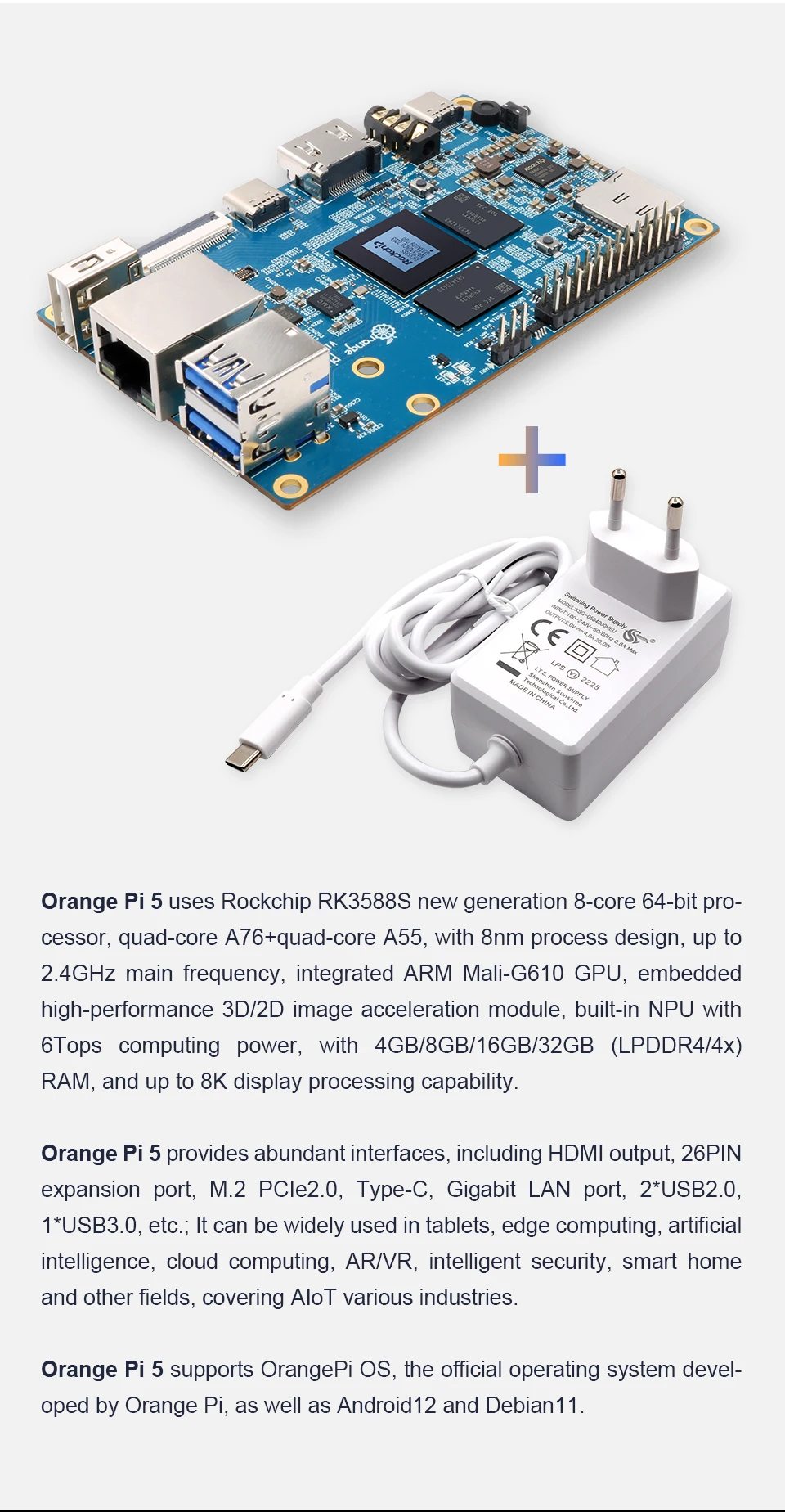 Плата для компьютера Orange Pi 5 16 ГБ + блок питания RK3588S