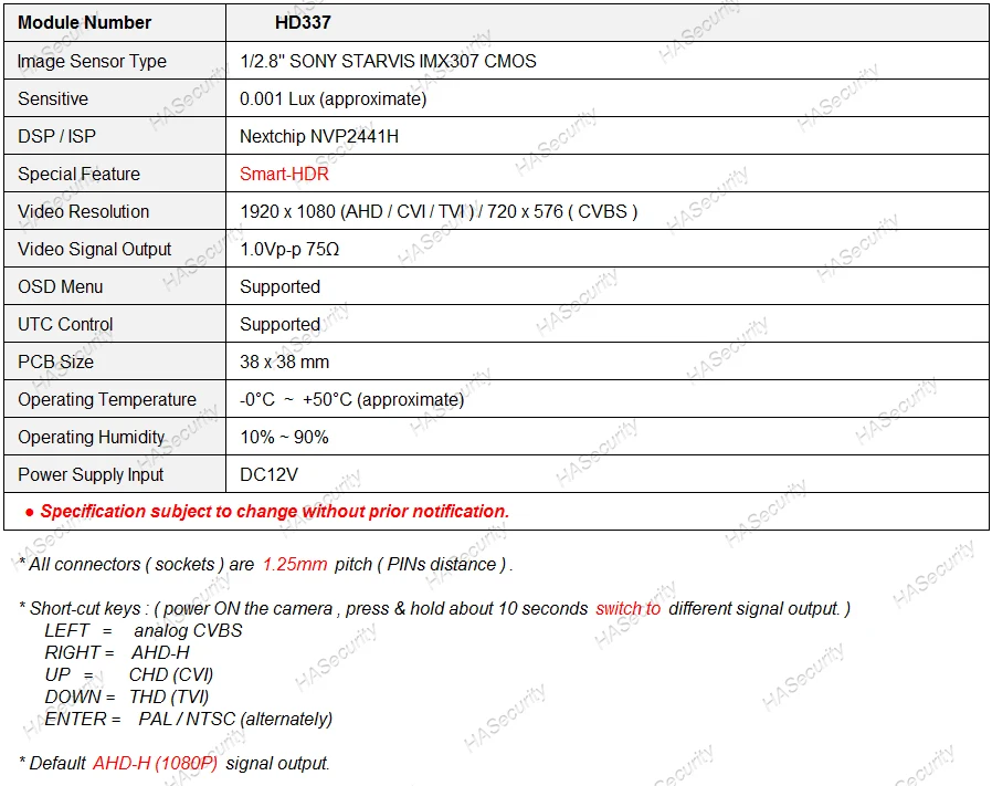 Плата PCB модуля камеры видеонаблюдения Smart HDR (WDR) AHD (1080P) / CVBS (D1) 1/2.8 "STARVIS IMX307 CMOS + NVP2441 (дополнительные детали)