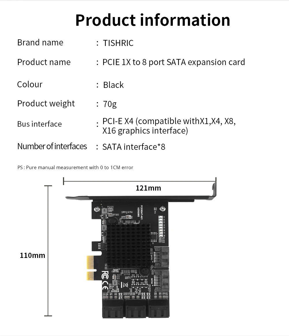 Плата расширения TISHRIC PCIE SATA 4X 1X на 2/8/10 портов SATA 3,0 PCI E контроллер pci Express усилитель, 6 Гбит/с, плата расширения