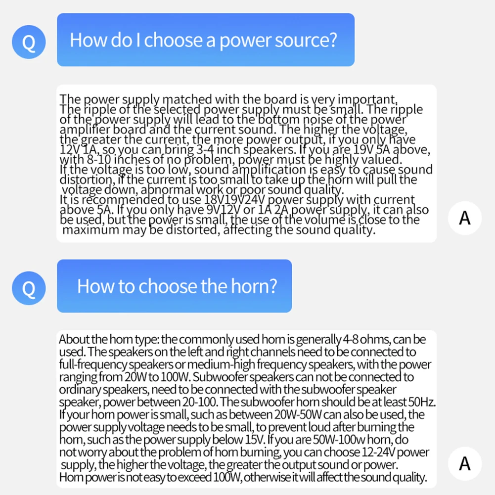 Адаптированный Источник питания: DC12 ~ 24V/5A или выше (более высокое напряжение, более высокая выходная мощность) Адаптированный динамик: 20 ~ 100 Вт, 4 ~ 8 Ом