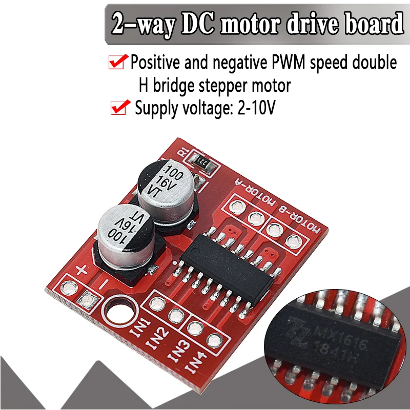 Модуль привода двигателя очень подходит для использования в интеллектуальном автомобиле с питанием от аккумулятора, игрушечном автомобиле, Роботе и т. д. Напряжение питания 2V ~ 10V может одновременно двух устройств двигатель постоянного тока или 1 4 линии 2-фазный шаговый двигатель, может обеспечить положительный и функция контроля скорости, каждый ток для 1.5A A постоянного тока. Пиковый ток до 2,5a, с тепловой защитой и автоматическим восстановлением.