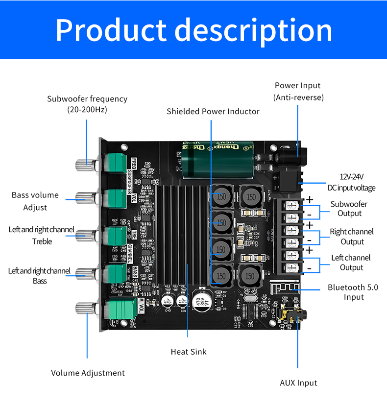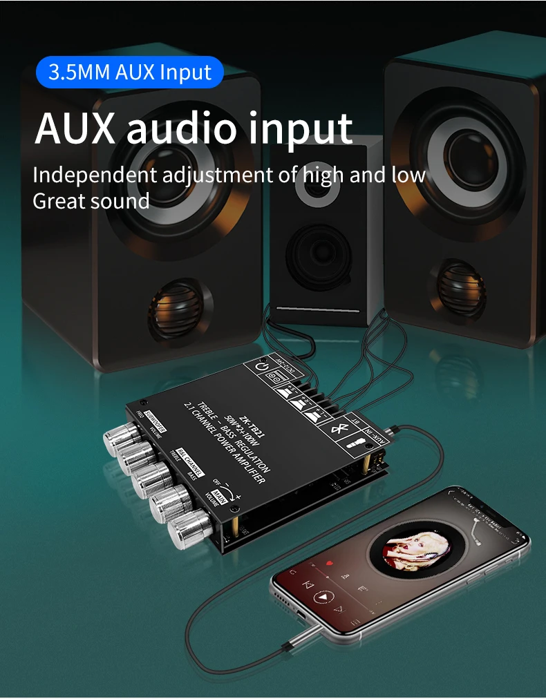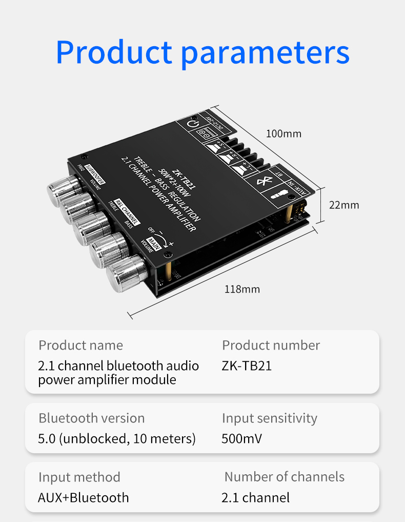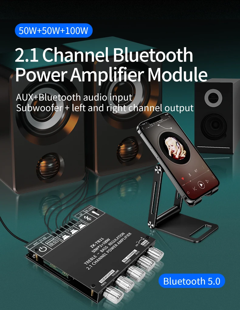 Плата усилителя мощности Bluetooth TB21, 2,1 каналов, 50 Вт x 2 + 100 Вт, TPA3116D2