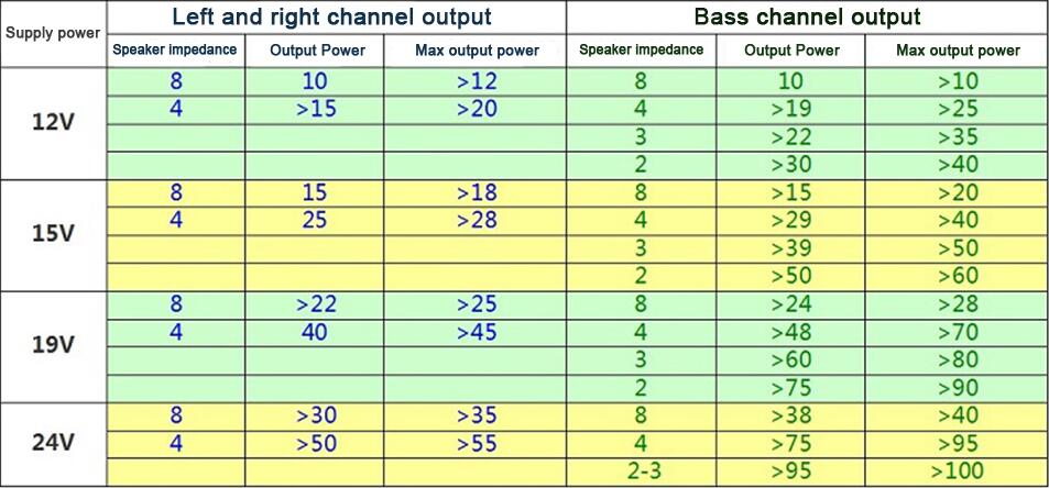 Power and power supply voltage, the amplitude of the sound source signal, the size of the speaker impedance are all related, any kind of deficiency will affect the power