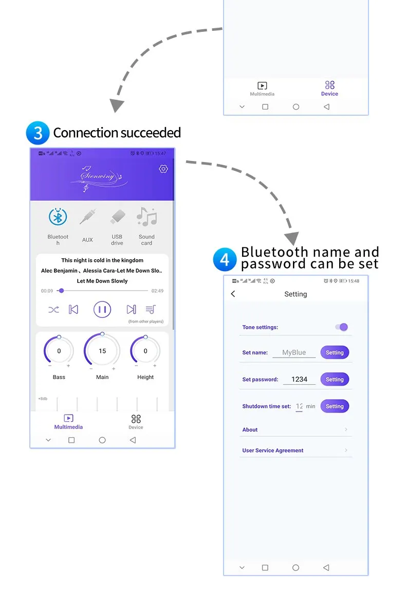 • AMP К USB T50L APP:Подключите устройство к усилителю через Bluetooth или AUX и легко Управляйте музыкой с помощью приложения T50L на своем смартфоне.
