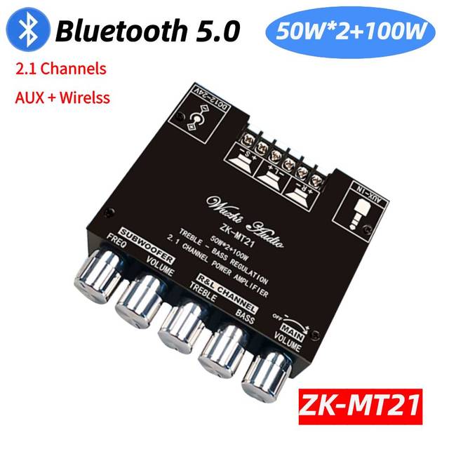 ZK-MT21 2X50 Вт + 100 Вт 2,1-канальный сабвуфер плата цифрового усилителя мощности AUX 12 В 24 В аудио стереоБлютуз-Совместимый 5,0 Bass Amp для динамика домашнего кинотеатра