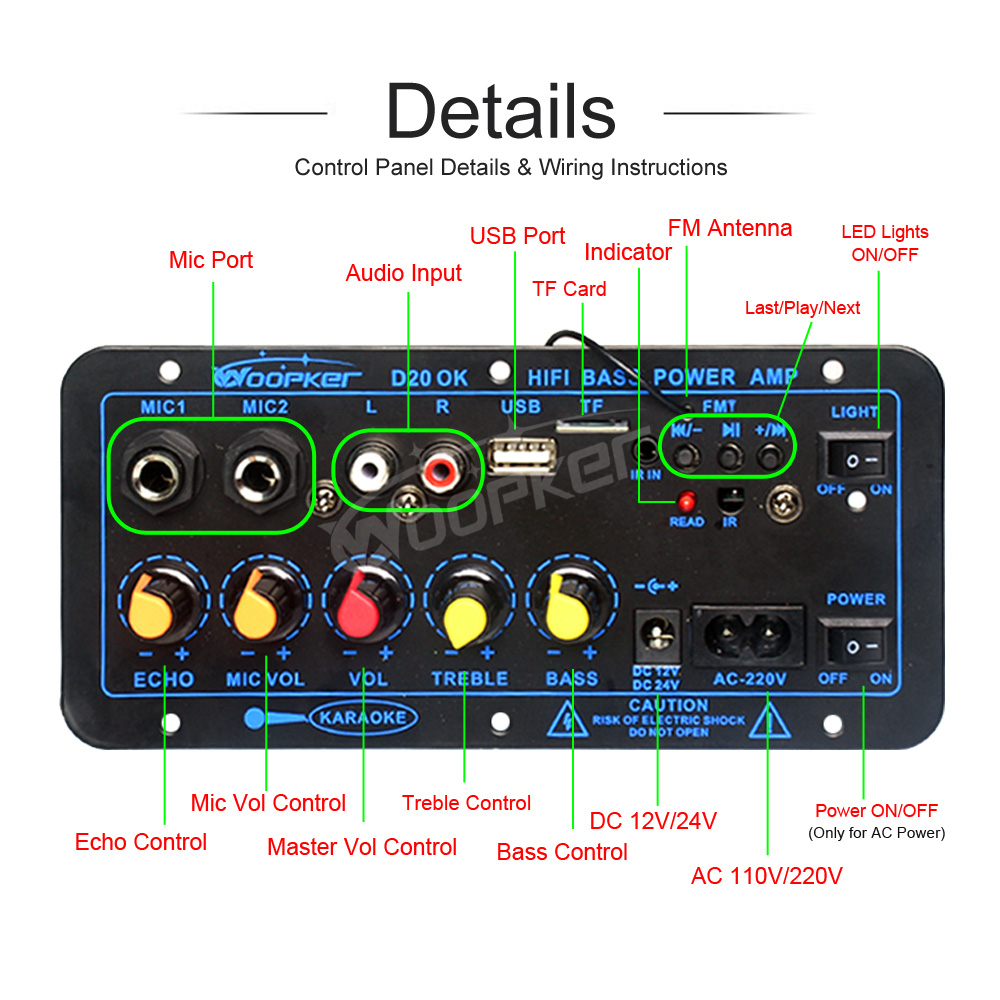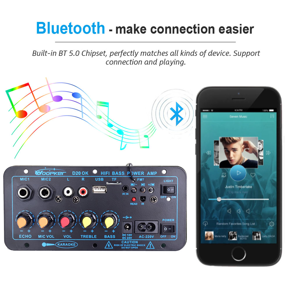 Плата усилителя Woopker, 60-200 Вт, Bluetooth, USB, FM-радио, TF-плеер
