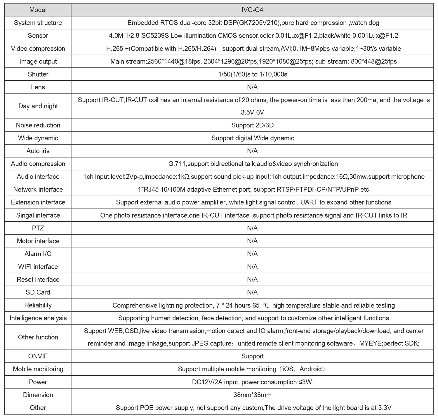 Support ONVIF, access third party, Support various mobile monitoring(iPhone, Android);