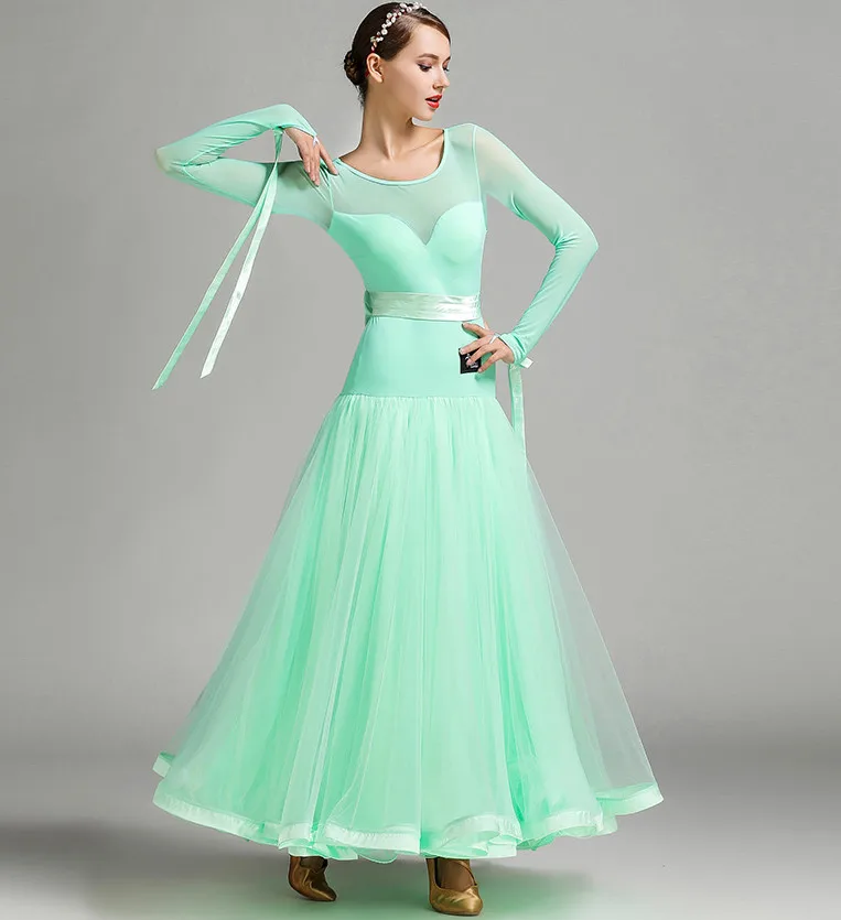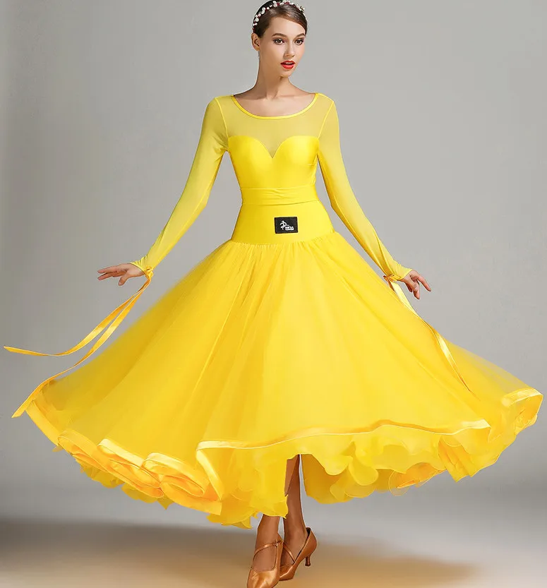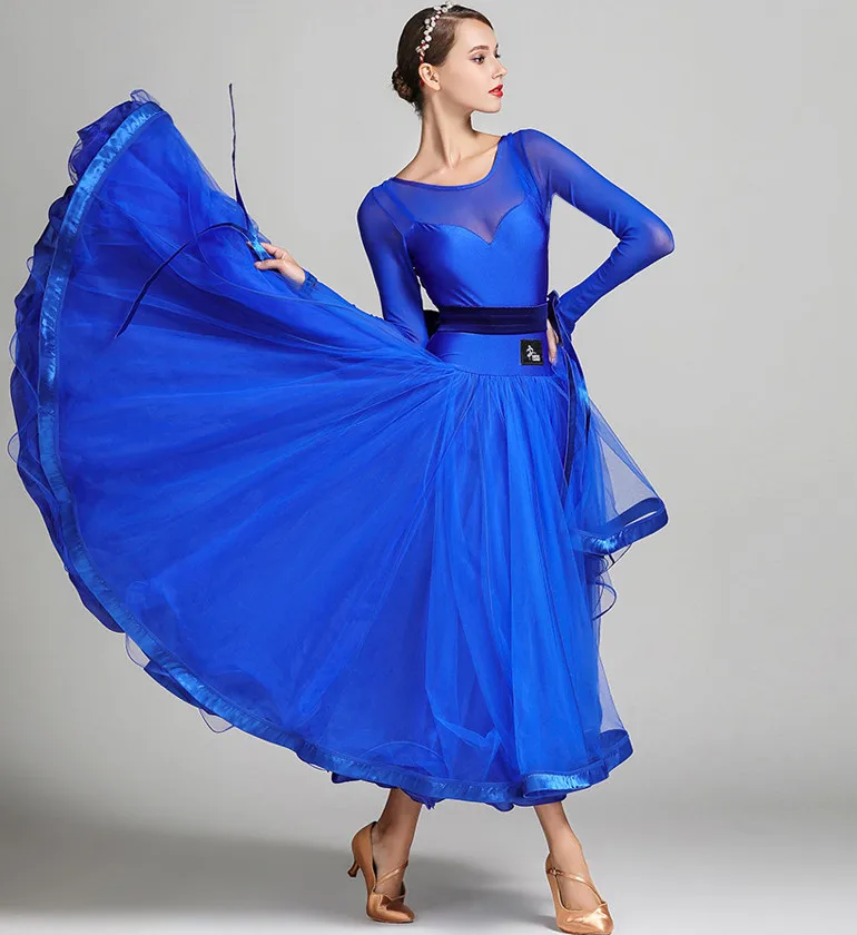 Платье для Бальных соревнований Waltz, стандартные современные костюмы для танцевальных выступлений, женское Сетчатое вечернее платье, пикантное платье с широкой юбкой