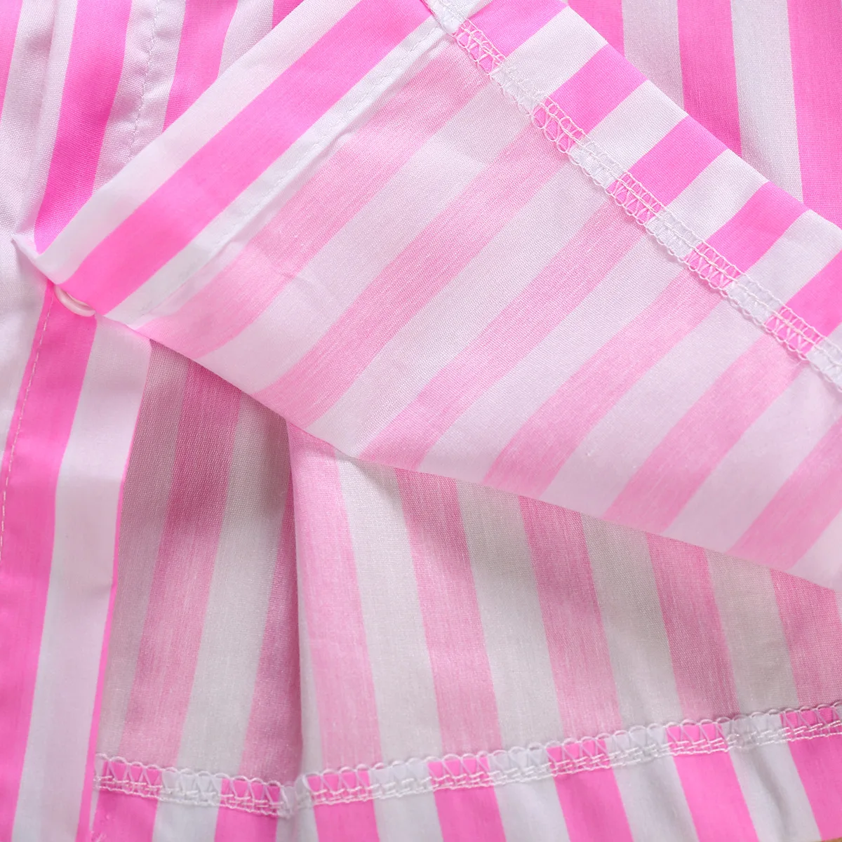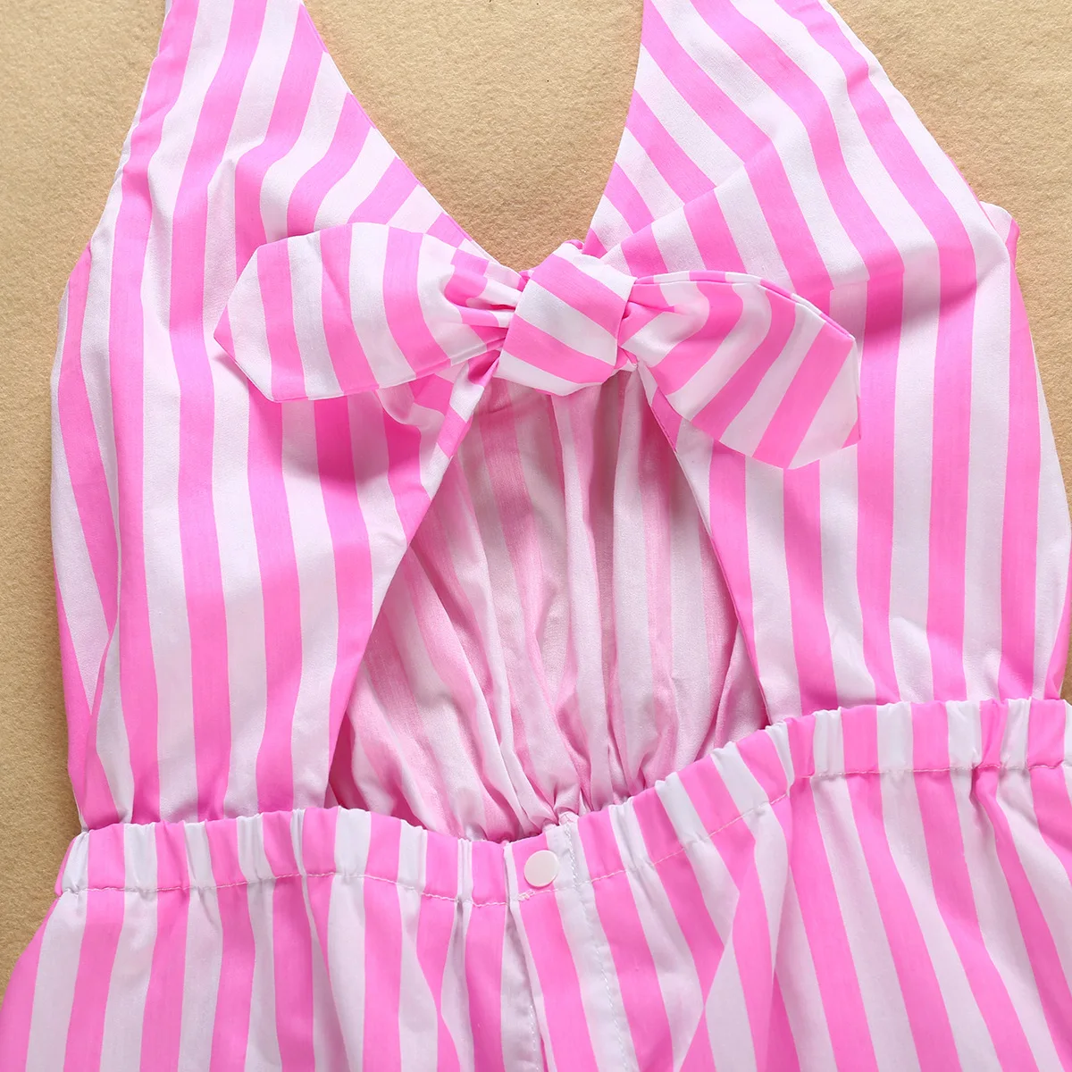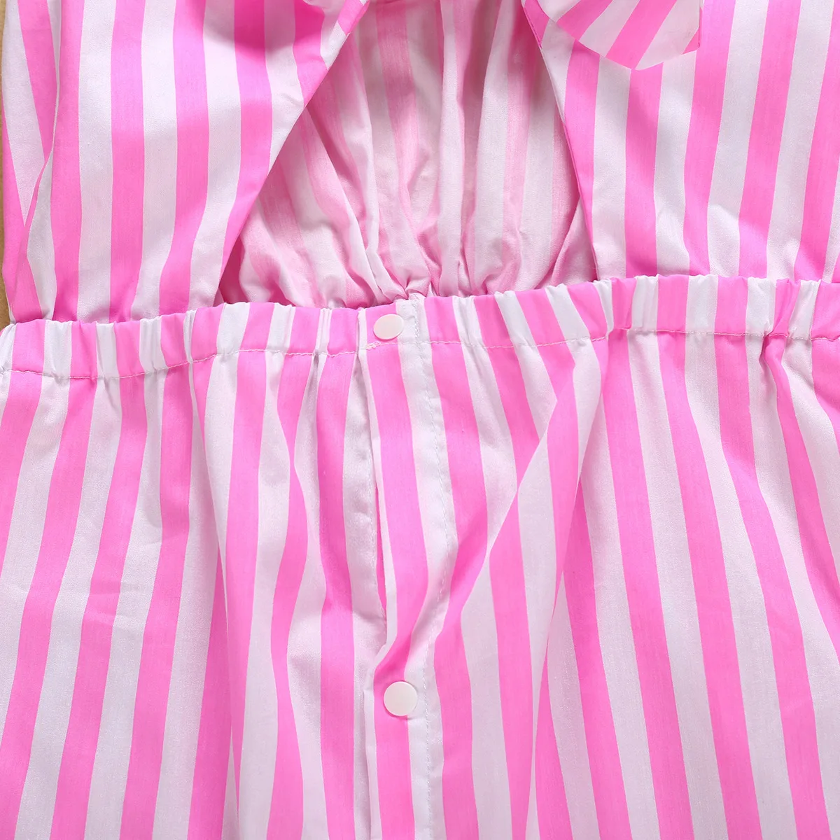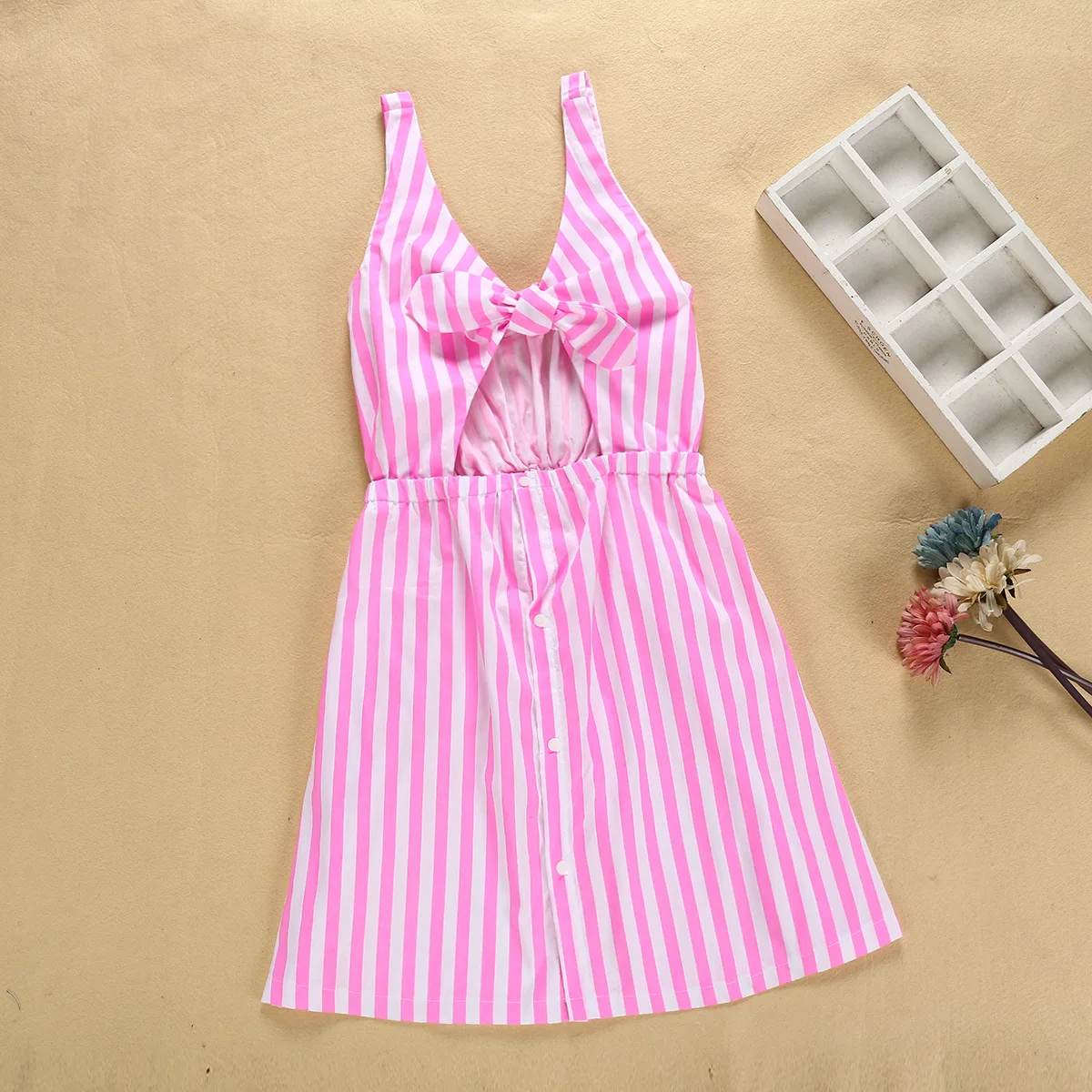 Платье для мамы и дочки с вертикальным полосатым принтом и бантом