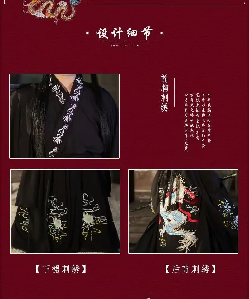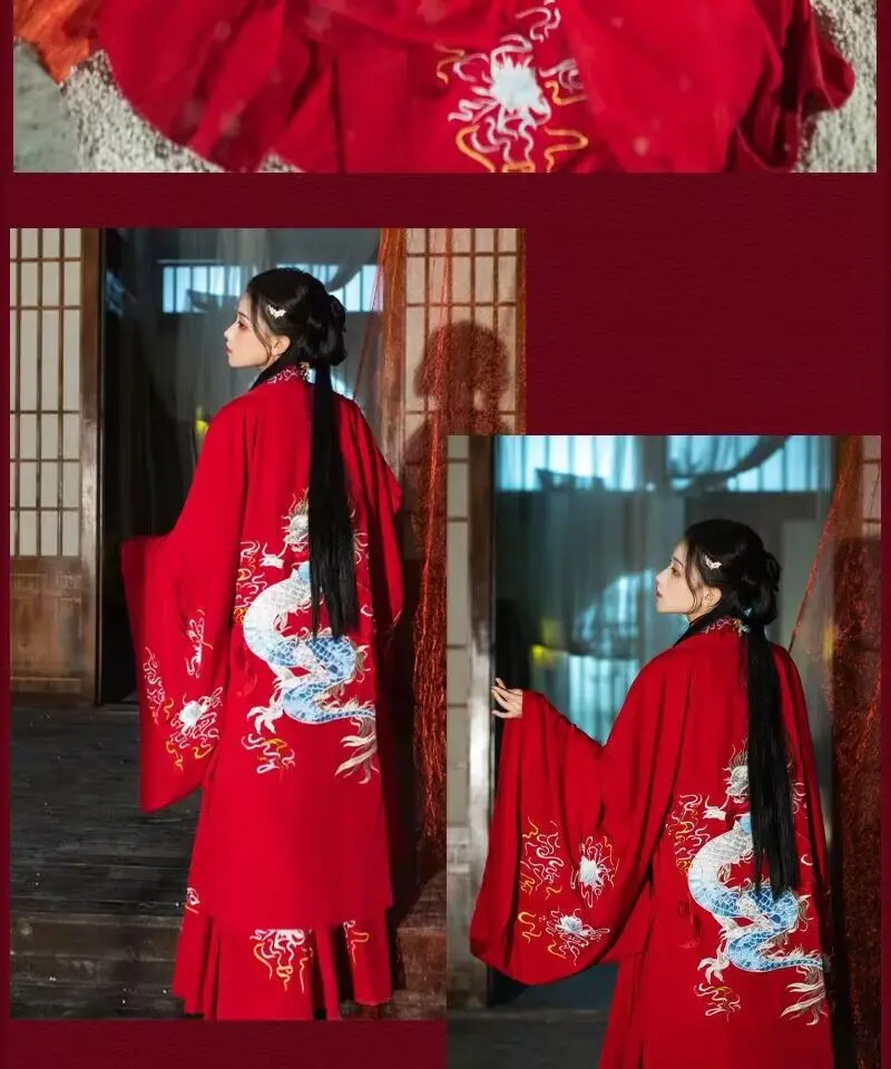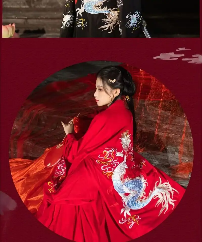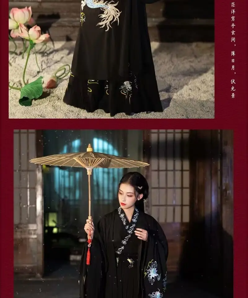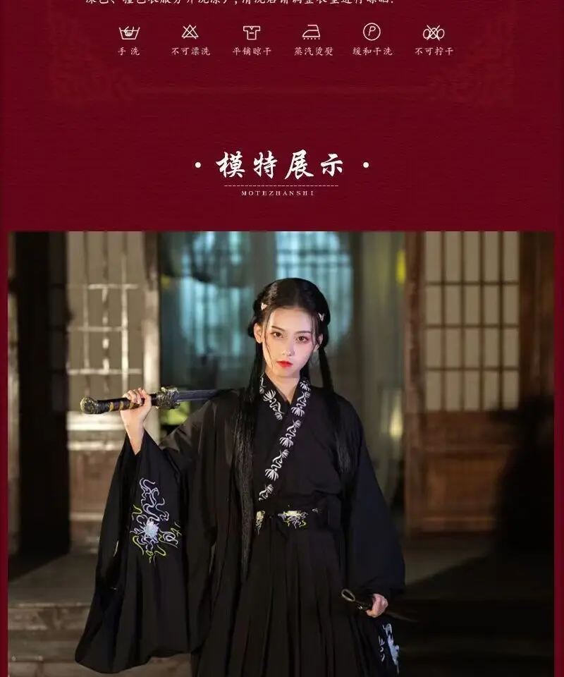 Платье ханьфу для женщин, традиционная китайская винтажная вышивка, женский костюм ханьфу для косплея на Хэллоуин, черно-красный костюм ханьфу, рубашка + юбка + пальто