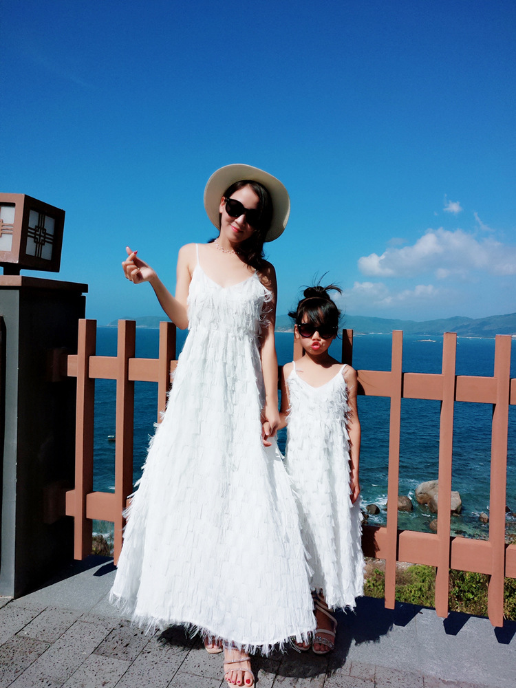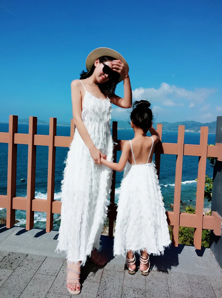 Color WHITE mother daughter tank dresses family matching clothes 2023 summer new
