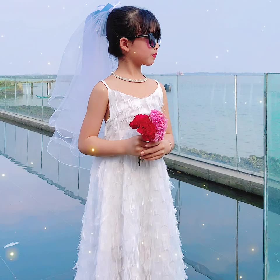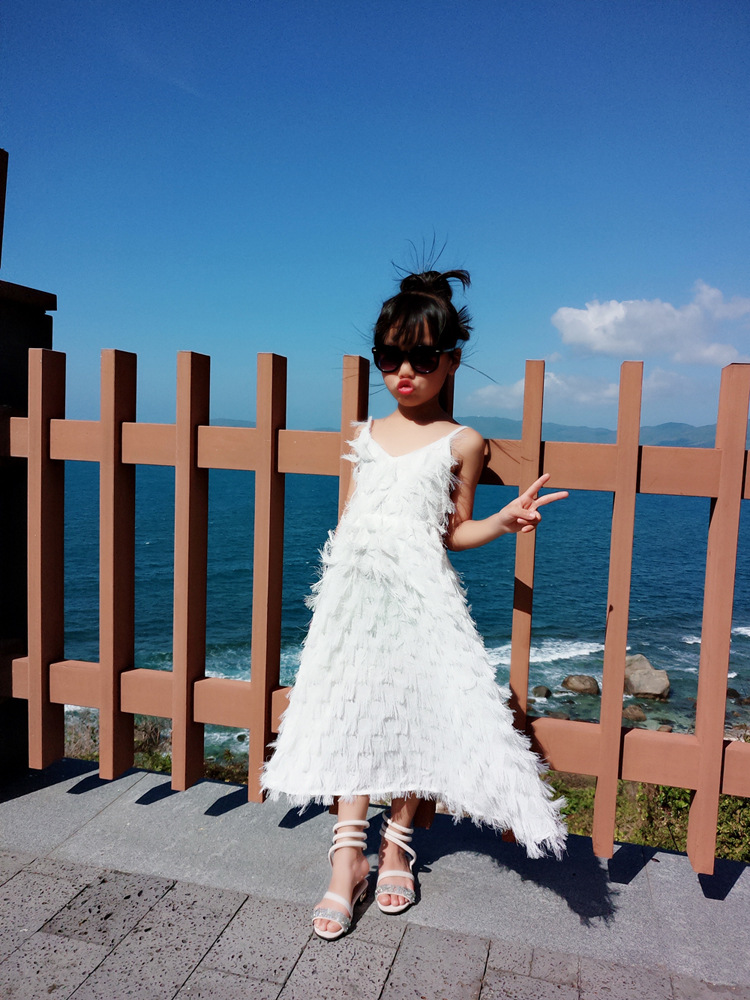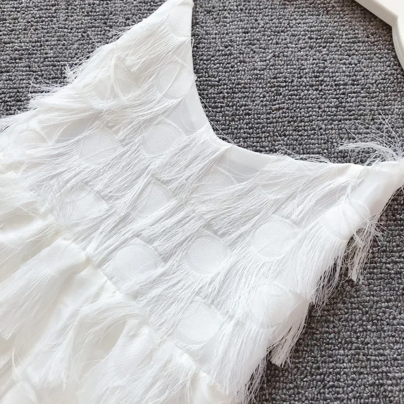 Pattern feather tassel patchwork slip dresses for girls and mother outfits
