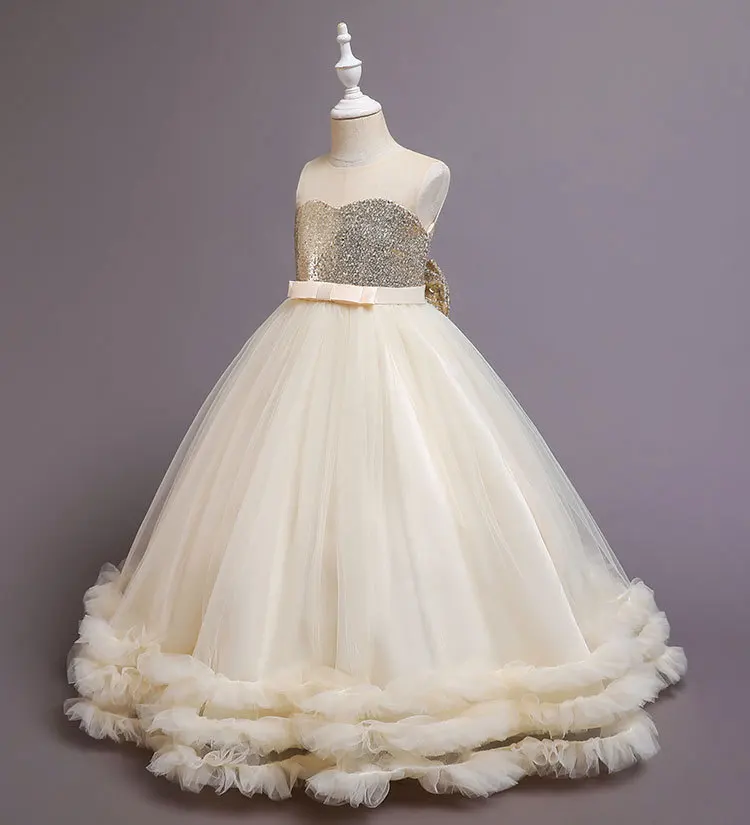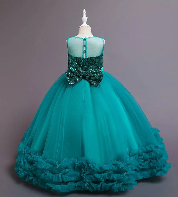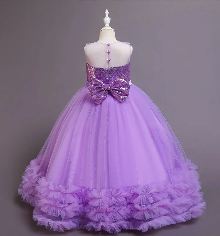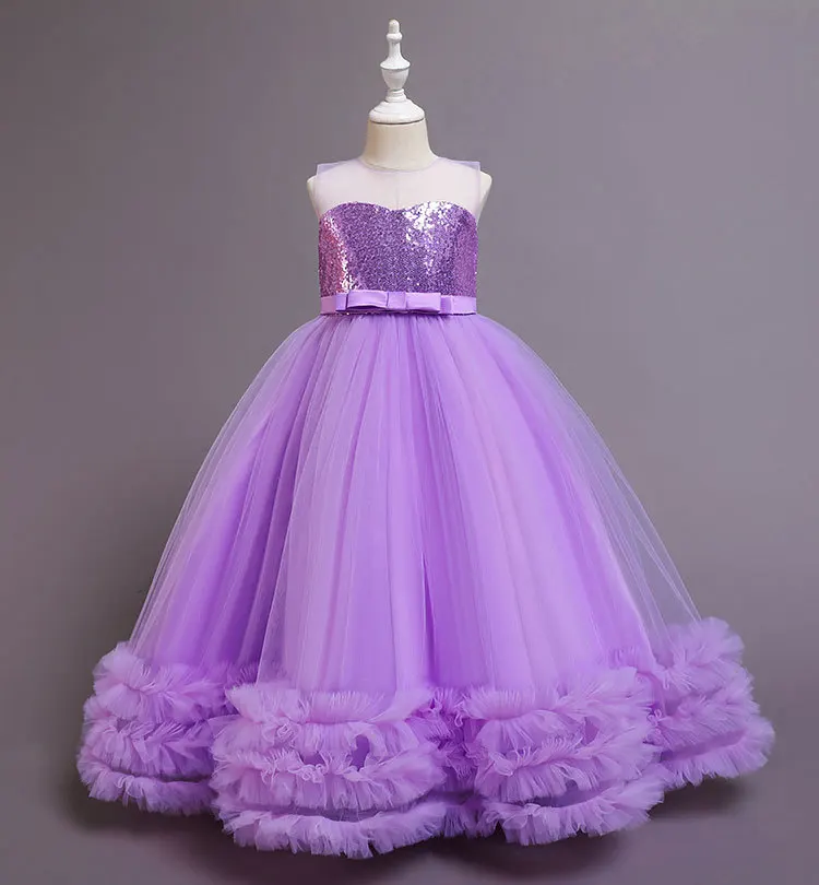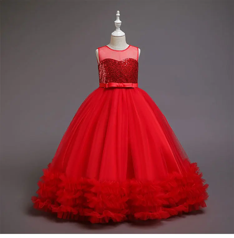 Платье-пианино для девочек-подростков, элегантное вечернее платье с блестками, с узлом, для выступлений, на день рождения, от 4 до 12 лет