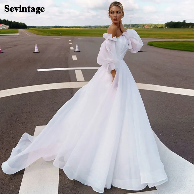 Платье Свадебное в стиле бохо, с открытой спиной и пышными рукавами