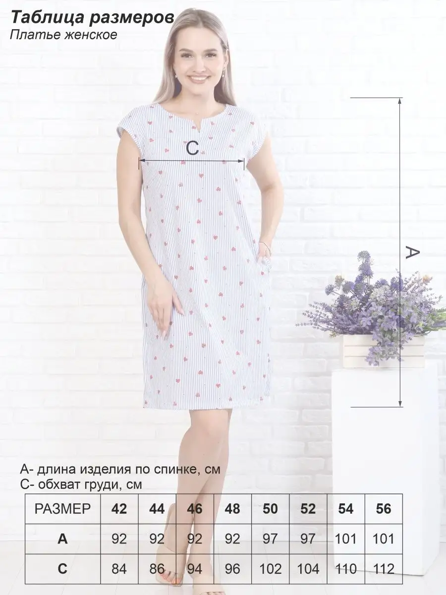 Описание: Платье летнее домашнее повседневное хлопковое с карманами больших размеров, выполнено из трикотажного полотна кулирка-100% хлопок. Удобная хлопковая туника большие размеры, стройнит. Горловина круглой формы с декоративной капелькой v образной формы. Короткий рукав. Платье летнее женское может заменить сарафан в жару, так как полностью изготовлено из воздухопроницаемого, мягкого и приятного для кожи хлопка. Платье миди будет хорошо смотреться на разных типах женской фигуры, для женщин всех возрастов, для полных. Свободный крой подарит Вам полную свободу движений и комфорт! Отлично подойдет как подарок любимой, маме, бабушке, сестре. Широкий размерный ряд позволяет подобрать платье как для стройной так и для полной женщины. Идеально для дома, для летних прогулок, незаменимо летом в жару. Отличная замена халатам, позволит выглядеть в домашней обстановке ярко и красиво. Домашняя и повседневная одежда больших размеров для женщин в магазине Domasha collection. Длина изделия по спинке р-р 42,44 - 92 см, 46,48 - 92 см, 50 - 97 см, 52 - 97 см, 54 - 101 см, 56 - 101 см, 58 - 101 см, 60 - 101 см. Ткань гигроскопична, воздухопроницаема, при правильном режиме стирки в стиральной машине до 40 гр. на низких оборотах, сушке и глажке дает незначительную усадку 1,5-2 см, хорошо держит форму.