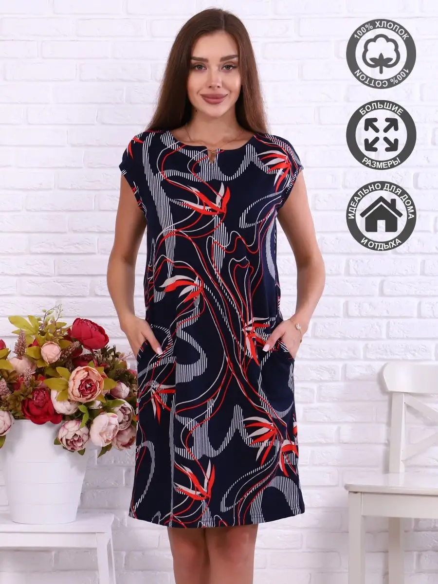 Описание: Платье летнее домашнее повседневное хлопковое с карманами больших размеров, выполнено из трикотажного полотна кулирка-100% хлопок. Удобная хлопковая туника большие размеры, стройнит. Горловина круглой формы с декоративной капелькой v образной формы. Короткий рукав. Платье летнее женское может заменить сарафан в жару, так как полностью изготовлено из воздухопроницаемого, мягкого и приятного для кожи хлопка. Платье миди будет хорошо смотреться на разных типах женской фигуры, для женщин всех возрастов, для полных. Свободный крой подарит Вам полную свободу движений и комфорт! Отлично подойдет как подарок любимой, маме, бабушке, сестре. Широкий размерный ряд позволяет подобрать платье как для стройной так и для полной женщины. Идеально для дома, для летних прогулок, незаменимо летом в жару. Отличная замена халатам, позволит выглядеть в домашней обстановке ярко и красиво. Домашняя и повседневная одежда больших размеров для женщин в магазине Domasha collection. Длина изделия по спинке р-р 42,44 - 92 см, 46,48 - 92 см, 50 - 97 см, 52 - 97 см, 54 - 101 см, 56 - 101 см, 58 - 101 см, 60 - 101 см. Ткань гигроскопична, воздухопроницаема, при правильном режиме стирки в стиральной машине до 40 гр. на низких оборотах, сушке и глажке дает незначительную усадку 1,5-2 см, хорошо держит форму.