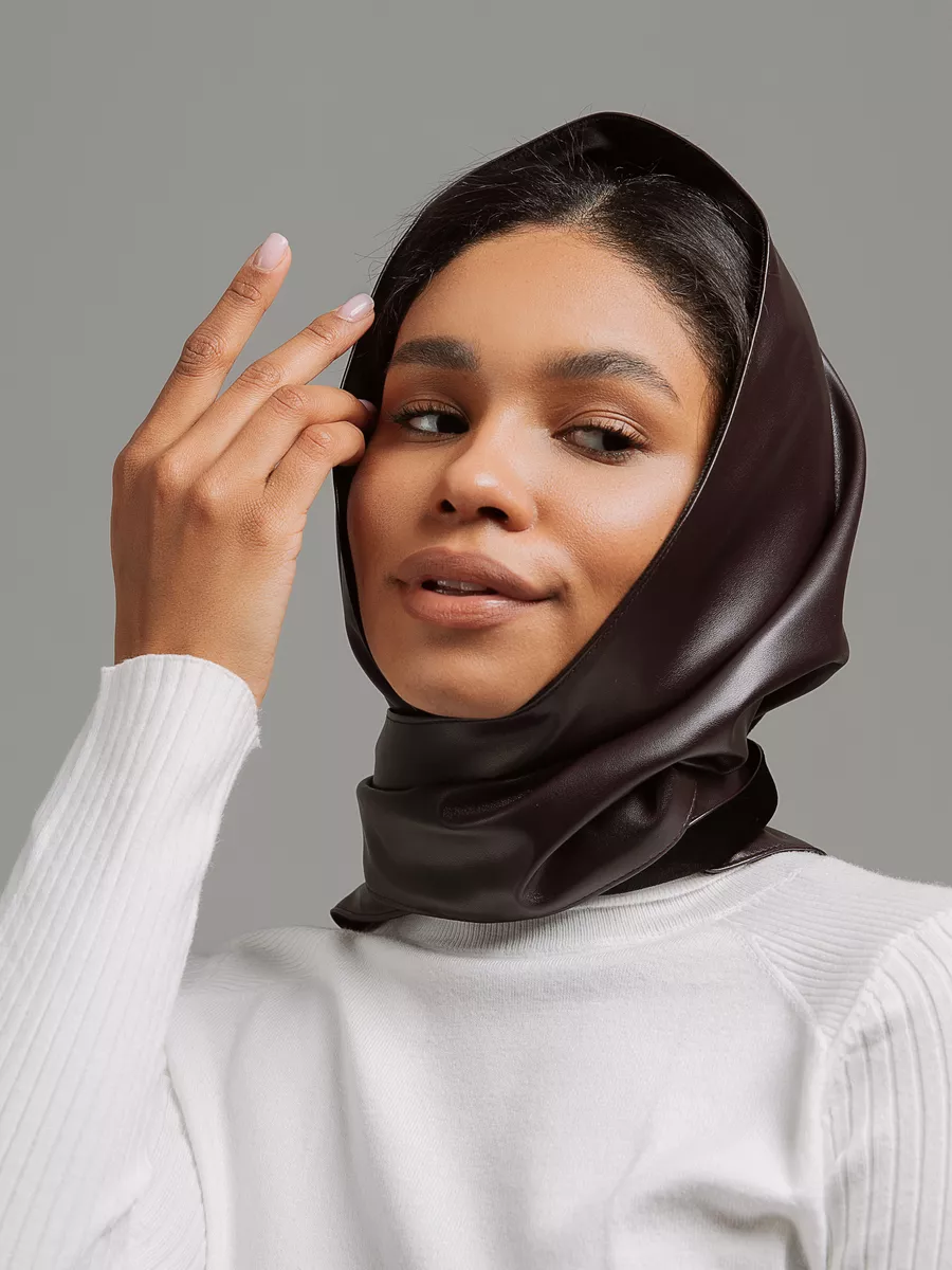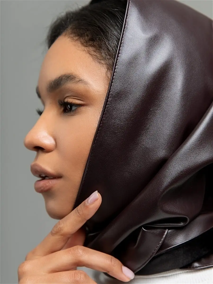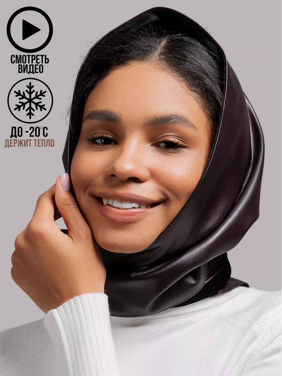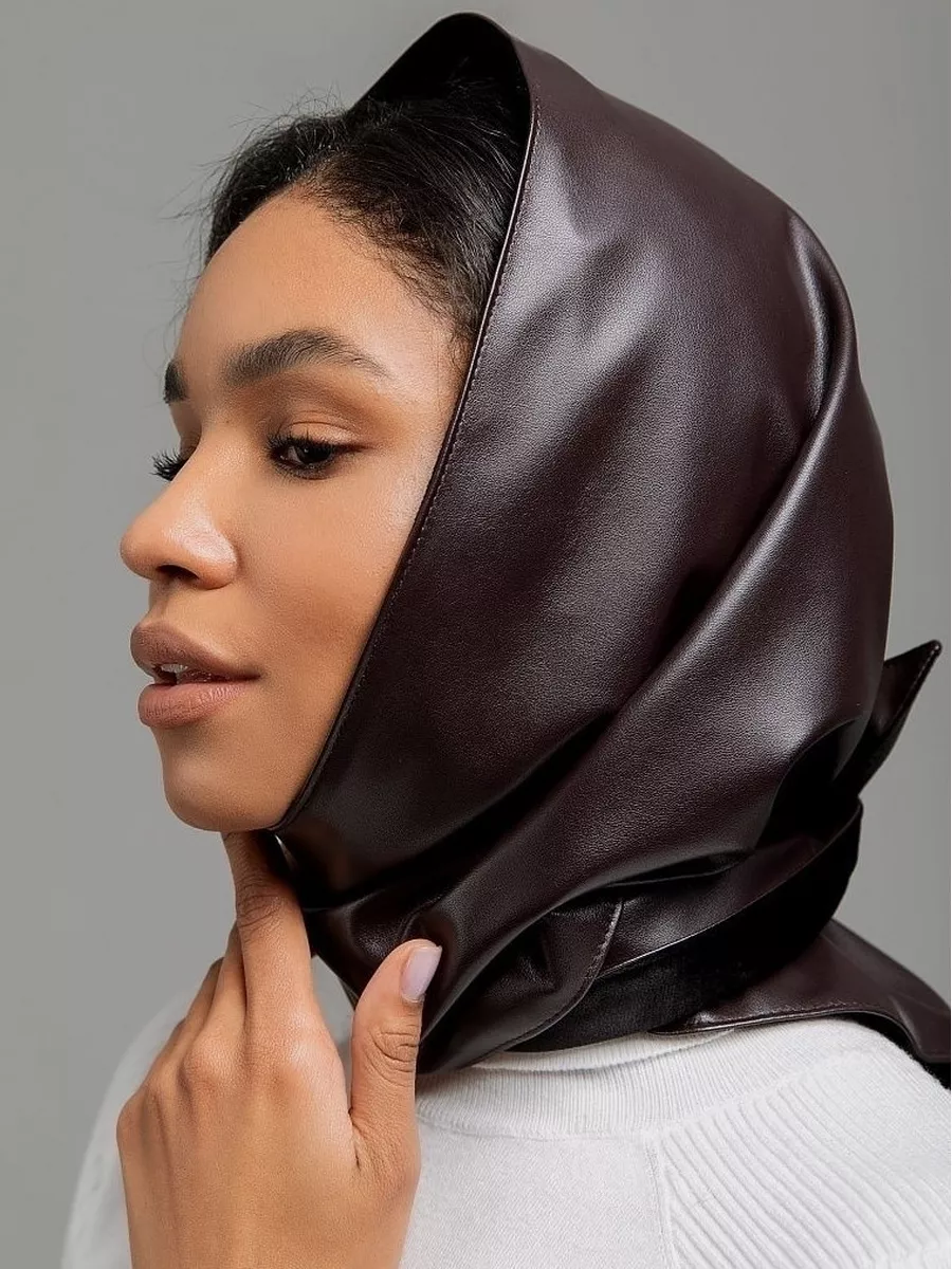 Платок шапка капор косынка кожаная зимняя утепленная экокожа