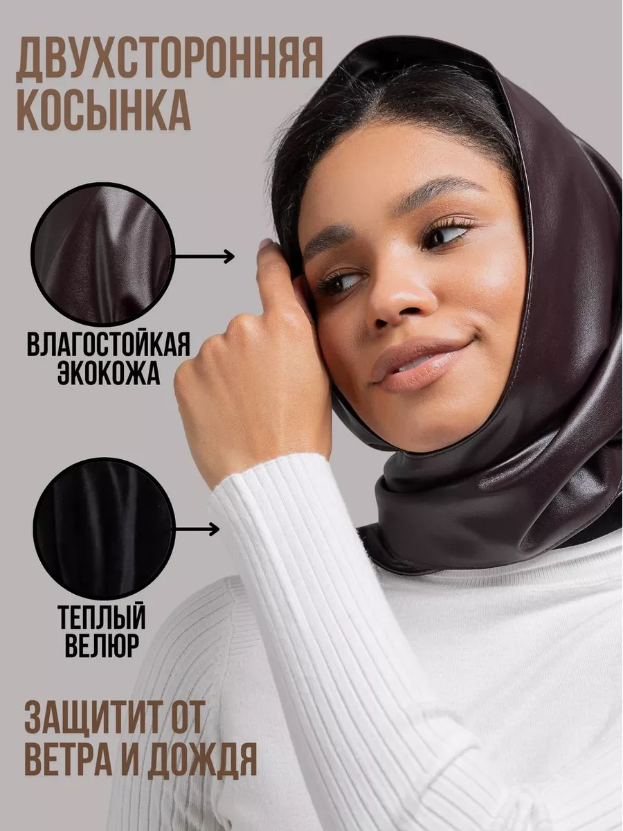 Описание: Платок косынка кожаная женский из экокожи на голову двухсторонний утепленный зимний заменит: шапка женская зима, снуд женский зимний, тюрбан женский. Женский головной убор является интересным аксессуаром любого наряда, его можно завязать на голову в прохладную осень, весна. Как шарф обмотать на шею в качестве дополнения к образу, накинуть на плечи как палантин. Косынка платок на шею выгодно подчеркивает стиль. Косынка зимняя женская подойдет под пальто или шубу. Платок треугольный как косынка утепленная, но тонкий и легкий, дает защиту круглогодичный. Однотонные, пастельные цвета: бежевый, голубой, желтый, зеленый, коричневый, красный, оранжевый, серый, синий, черный, без принта, с принтом, классические, с отворотом позволят Вам меняться под настроение. Искусственная кожа высокого качества выглядит как натуральная кожа делает его непродуваемый, непромокаемый можно смело заменить Капор женский зимний. Собственное производство брендовых моделей от SWEET COLD позволит Вам быть уникальной и стильной! Платок на голову из эко кожи – украшение на голову женское, стильный аксессуар, который ворвался в модные образы в прошлом сезоне и уже второй год остается ультрамодным и невероятно актуальным элементом в гардеробе. В преддверии сезона осень-зима 2022 такие головные уборы женские снова волнуют сердца и мысли модниц, ведь любой аутфит заиграет новыми красками, если разнообразить его таким украшением, как платок косынка женский.Огромный плюс такого головного убора в том, что платок косынка имеет огромную палитру звучаний: от выдержанного до дерзкого – все зависит от того, какое у вас сегодня настроение и какое впечатление нужно произвести.Мы производим женские головные уборы на зиму не первый сезон и нашли самый трендовый дизайн косынки. Наша косынка на голову – тот самый хит с модных подиумов: косынка с удлиненными концами.Помимо того, что этот крой самый популярный, косынка на голову кожаная такого дизайна имеет множество вариантов для драпировки и стилизации. Платок на голову женский теплый – аксессуар, проверенный временем. Если вам кажется, что такие головные уборы вам не к лицу, значит, вы еще просто не нашли свой способ завязывать косынку.Если вы хотите создать непринужденный стритстайл, то можно повязать косынку узлом на шее сзади. Образ будет выглядеть стильно с короткой верхней одеждой и высокими сапогами, либо же с грубыми ботинками.Косынка платок на голову, завязанная классическим узлом впереди, подойдет для создания романтичного образа. Важно помнить о том, что шапка косынка должна быть завязана свободно, немного ниспадать с головы. Поэтому такой образ будет уместен только при плюсовой температуре. Если хотите подчеркнуть экстравагантность и чувство вкуса, можно поэкспериментировать с вариантами узлов. Косынка женская черная с декоративным узлом обязательно обратит на себя внимание окружающих.Самые смелые девушки могут повязать косынку на манер банданы. Такая бандана косынка женская в паре с курткой – косухой или любым верхом оверсайз выглядит оригинально и привлекательно.Такие головные уборы зимние женские идут абсолютно всем.Для девушек с круглым лицом более подходящим вариантом является косынка женская на голову теплая темных оттенков, девушкам с вытянутым овалом лица можно присмотреться к косы