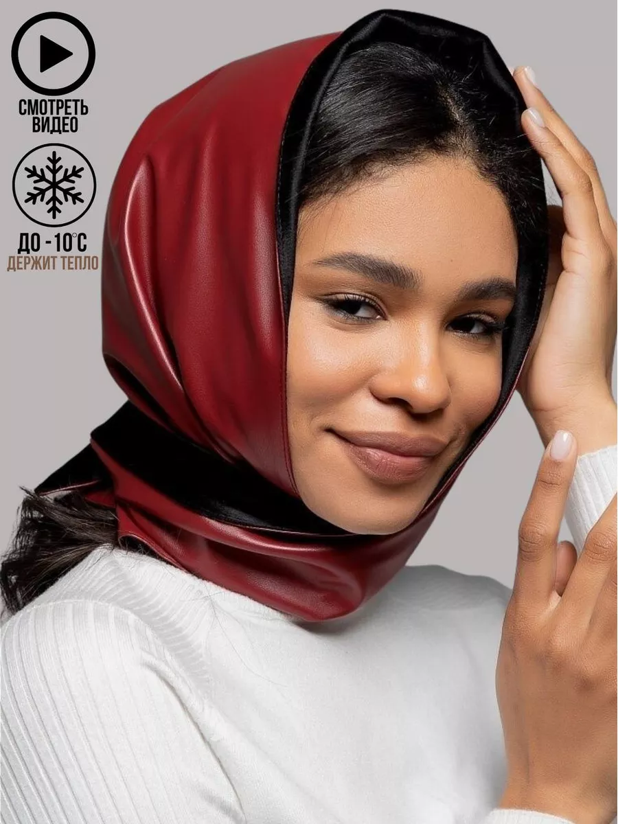 Платок шапка капор косынка кожаная зимняя утепленная экокожа