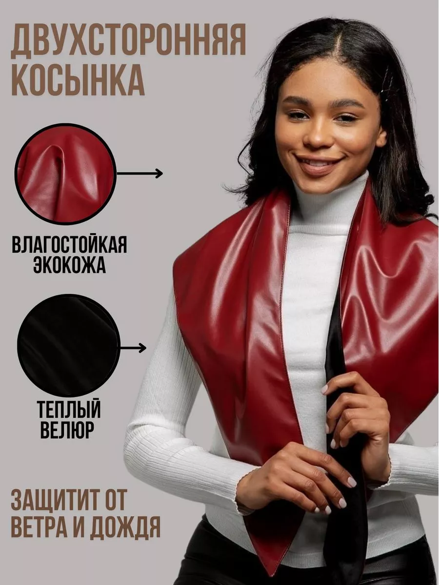 Описание: Платок косынка кожаная женский из экокожи на голову двухсторонний утепленный зимний заменит: шапка женская зима, снуд женский зимний, тюрбан женский. Женский головной убор является интересным аксессуаром любого наряда, его можно завязать на голову в прохладную осень, весна. Как шарф обмотать на шею в качестве дополнения к образу, накинуть на плечи как палантин. Косынка платок на шею выгодно подчеркивает стиль. Косынка зимняя женская подойдет под пальто или шубу. Платок треугольный как косынка утепленная, но тонкий и легкий, дает защиту круглогодичный. Однотонные, пастельные цвета: бежевый, голубой, желтый, зеленый, коричневый, красный, оранжевый, серый, синий, черный, без принта, с принтом, классические, с отворотом позволят Вам меняться под настроение. Искусственная кожа высокого качества выглядит как натуральная кожа делает его непродуваемый, непромокаемый можно смело заменить Капор женский зимний. Собственное производство брендовых моделей от SWEET COLD позволит Вам быть уникальной и стильной! Платок на голову из эко кожи – украшение на голову женское, стильный аксессуар, который ворвался в модные образы в прошлом сезоне и уже второй год остается ультрамодным и невероятно актуальным элементом в гардеробе. В преддверии сезона осень-зима 2022 такие головные уборы женские снова волнуют сердца и мысли модниц, ведь любой аутфит заиграет новыми красками, если разнообразить его таким украшением, как платок косынка женский.Огромный плюс такого головного убора в том, что платок косынка имеет огромную палитру звучаний: от выдержанного до дерзкого – все зависит от того, какое у вас сегодня настроение и какое впечатление нужно произвести.Мы производим женские головные уборы на зиму не первый сезон и нашли самый трендовый дизайн косынки. Наша косынка на голову – тот самый хит с модных подиумов: косынка с удлиненными концами.Помимо того, что этот крой самый популярный, косынка на голову кожаная такого дизайна имеет множество вариантов для драпировки и стилизации. Платок на голову женский теплый – аксессуар, проверенный временем. Если вам кажется, что такие головные уборы вам не к лицу, значит, вы еще просто не нашли свой способ завязывать косынку.Если вы хотите создать непринужденный стритстайл, то можно повязать косынку узлом на шее сзади. Образ будет выглядеть стильно с короткой верхней одеждой и высокими сапогами, либо же с грубыми ботинками.Косынка платок на голову, завязанная классическим узлом впереди, подойдет для создания романтичного образа. Важно помнить о том, что шапка косынка должна быть завязана свободно, немного ниспадать с головы. Поэтому такой образ будет уместен только при плюсовой температуре. Если хотите подчеркнуть экстравагантность и чувство вкуса, можно поэкспериментировать с вариантами узлов. Косынка женская черная с декоративным узлом обязательно обратит на себя внимание окружающих.Самые смелые девушки могут повязать косынку на манер банданы. Такая бандана косынка женская в паре с курткой – косухой или любым верхом оверсайз выглядит оригинально и привлекательно.Такие головные уборы зимние женские идут абсолютно всем.Для девушек с круглым лицом более подходящим вариантом является косынка женская на голову теплая темных оттенков, девушкам с вытянутым овалом лица можно присмотреться к косы