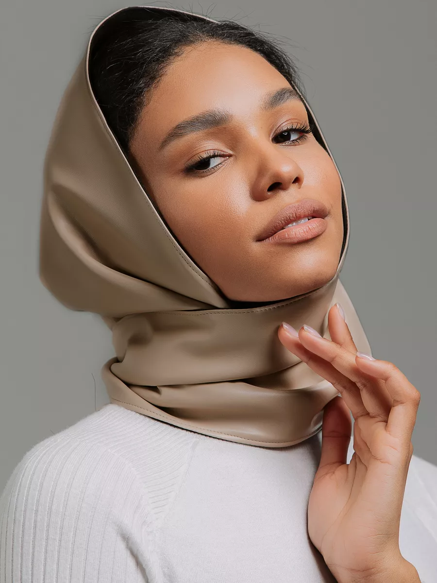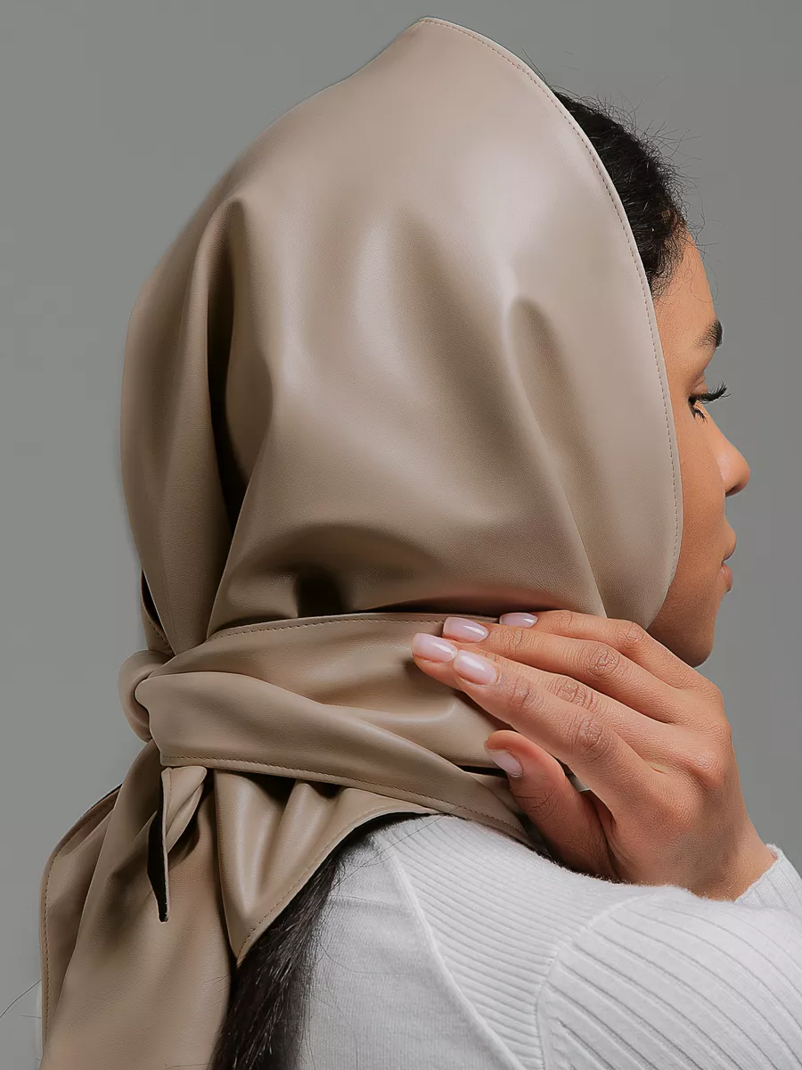 Платок шапка капор косынка кожаная зимняя утепленная экокожа