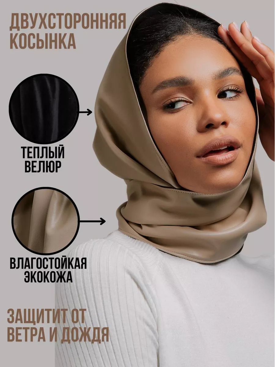 Описание: Платок косынка кожаная женский из экокожи на голову двухсторонний утепленный зимний заменит: шапка женская зима, снуд женский зимний, тюрбан женский. Женский головной убор является интересным аксессуаром любого наряда, его можно завязать на голову в прохладную осень, весна. Как шарф обмотать на шею в качестве дополнения к образу, накинуть на плечи как палантин. Косынка платок на шею выгодно подчеркивает стиль. Косынка зимняя женская подойдет под пальто или шубу. Платок треугольный как косынка утепленная, но тонкий и легкий, дает защиту круглогодичный. Однотонные, пастельные цвета: бежевый, голубой, желтый, зеленый, коричневый, красный, оранжевый, серый, синий, черный, без принта, с принтом, классические, с отворотом позволят Вам меняться под настроение. Искусственная кожа высокого качества выглядит как натуральная кожа делает его непродуваемый, непромокаемый можно смело заменить Капор женский зимний. Собственное производство брендовых моделей от SWEET COLD позволит Вам быть уникальной и стильной! Платок на голову из эко кожи – украшение на голову женское, стильный аксессуар, который ворвался в модные образы в прошлом сезоне и уже второй год остается ультрамодным и невероятно актуальным элементом в гардеробе. В преддверии сезона осень-зима 2022 такие головные уборы женские снова волнуют сердца и мысли модниц, ведь любой аутфит заиграет новыми красками, если разнообразить его таким украшением, как платок косынка женский.Огромный плюс такого головного убора в том, что платок косынка имеет огромную палитру звучаний: от выдержанного до дерзкого – все зависит от того, какое у вас сегодня настроение и какое впечатление нужно произвести.Мы производим женские головные уборы на зиму не первый сезон и нашли самый трендовый дизайн косынки. Наша косынка на голову – тот самый хит с модных подиумов: косынка с удлиненными концами.Помимо того, что этот крой самый популярный, косынка на голову кожаная такого дизайна имеет множество вариантов для драпировки и стилизации. Платок на голову женский теплый – аксессуар, проверенный временем. Если вам кажется, что такие головные уборы вам не к лицу, значит, вы еще просто не нашли свой способ завязывать косынку.Если вы хотите создать непринужденный стритстайл, то можно повязать косынку узлом на шее сзади. Образ будет выглядеть стильно с короткой верхней одеждой и высокими сапогами, либо же с грубыми ботинками.Косынка платок на голову, завязанная классическим узлом впереди, подойдет для создания романтичного образа. Важно помнить о том, что шапка косынка должна быть завязана свободно, немного ниспадать с головы. Поэтому такой образ будет уместен только при плюсовой температуре. Если хотите подчеркнуть экстравагантность и чувство вкуса, можно поэкспериментировать с вариантами узлов. Косынка женская черная с декоративным узлом обязательно обратит на себя внимание окружающих.Самые смелые девушки могут повязать косынку на манер банданы. Такая бандана косынка женская в паре с курткой – косухой или любым верхом оверсайз выглядит оригинально и привлекательно.Такие головные уборы зимние женские идут абсолютно всем.Для девушек с круглым лицом более подходящим вариантом является косынка женская на голову теплая темных оттенков, девушкам с вытянутым овалом лица можно присмотреться к косы