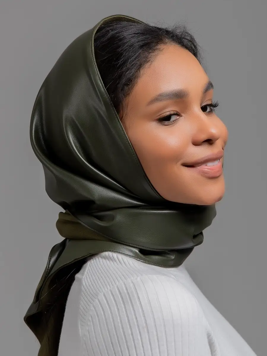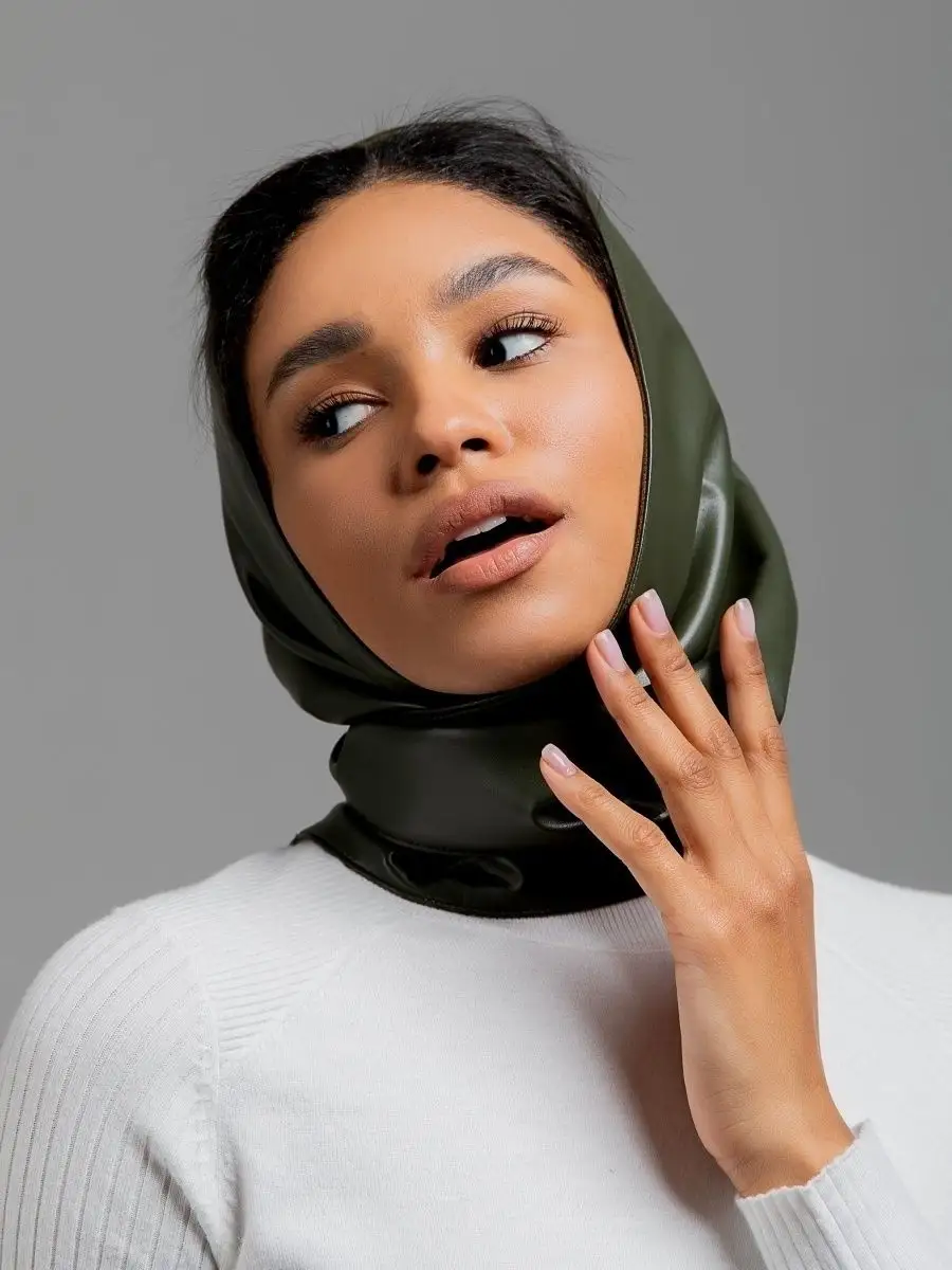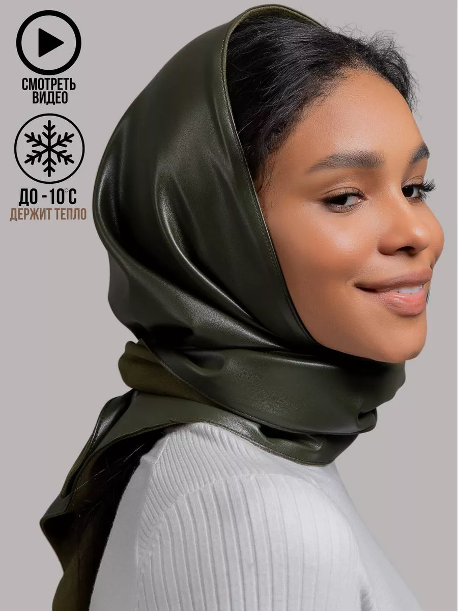 Платок шапка капор косынка кожаная зимняя утепленная экокожа