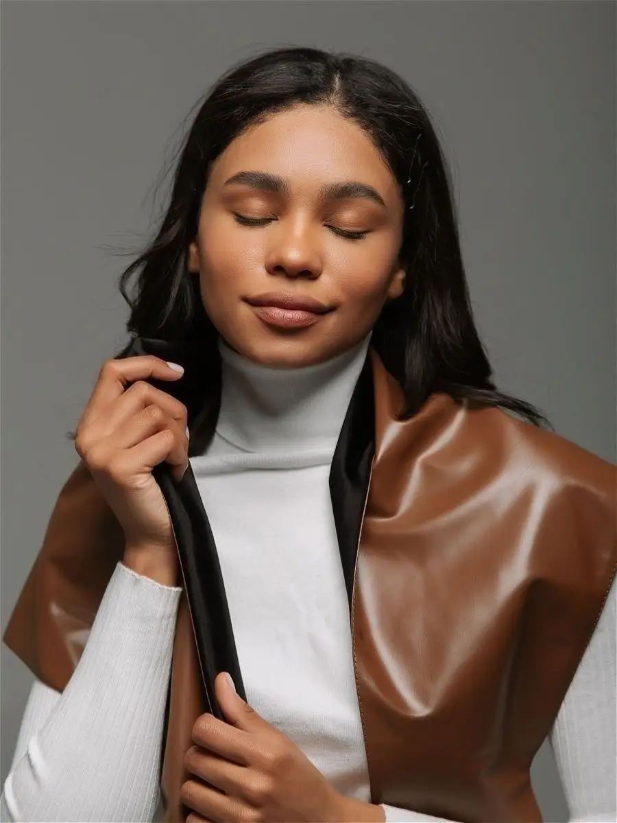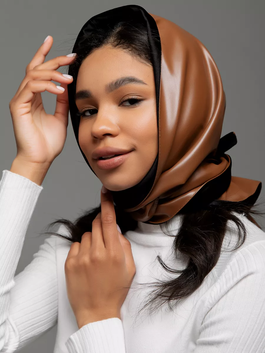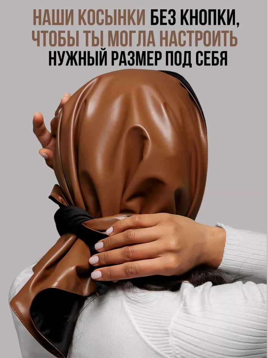 Описание: Платок косынка кожаная женский из экокожи на голову двухсторонний утепленный зимний заменит: шапка женская зима, снуд женский зимний, тюрбан женский. Женский головной убор является интересным аксессуаром любого наряда, его можно завязать на голову в прохладную осень, весна. Как шарф обмотать на шею в качестве дополнения к образу, накинуть на плечи как палантин. Косынка платок на шею выгодно подчеркивает стиль. Косынка зимняя женская подойдет под пальто или шубу. Платок треугольный как косынка утепленная, но тонкий и легкий, дает защиту круглогодичный. Однотонные, пастельные цвета: бежевый, голубой, желтый, зеленый, коричневый, красный, оранжевый, серый, синий, черный, без принта, с принтом, классические, с отворотом позволят Вам меняться под настроение. Искусственная кожа высокого качества выглядит как натуральная кожа делает его непродуваемый, непромокаемый можно смело заменить Капор женский зимний. Собственное производство брендовых моделей от SWEET COLD позволит Вам быть уникальной и стильной! Платок на голову из эко кожи – украшение на голову женское, стильный аксессуар, который ворвался в модные образы в прошлом сезоне и уже второй год остается ультрамодным и невероятно актуальным элементом в гардеробе. В преддверии сезона осень-зима 2022 такие головные уборы женские снова волнуют сердца и мысли модниц, ведь любой аутфит заиграет новыми красками, если разнообразить его таким украшением, как платок косынка женский.Огромный плюс такого головного убора в том, что платок косынка имеет огромную палитру звучаний: от выдержанного до дерзкого – все зависит от того, какое у вас сегодня настроение и какое впечатление нужно произвести.Мы производим женские головные уборы на зиму не первый сезон и нашли самый трендовый дизайн косынки. Наша косынка на голову – тот самый хит с модных подиумов: косынка с удлиненными концами.Помимо того, что этот крой самый популярный, косынка на голову кожаная такого дизайна имеет множество вариантов для драпировки и стилизации. Платок на голову женский теплый – аксессуар, проверенный временем. Если вам кажется, что такие головные уборы вам не к лицу, значит, вы еще просто не нашли свой способ завязывать косынку.Если вы хотите создать непринужденный стритстайл, то можно повязать косынку узлом на шее сзади. Образ будет выглядеть стильно с короткой верхней одеждой и высокими сапогами, либо же с грубыми ботинками.Косынка платок на голову, завязанная классическим узлом впереди, подойдет для создания романтичного образа. Важно помнить о том, что шапка косынка должна быть завязана свободно, немного ниспадать с головы. Поэтому такой образ будет уместен только при плюсовой температуре. Если хотите подчеркнуть экстравагантность и чувство вкуса, можно поэкспериментировать с вариантами узлов. Косынка женская черная с декоративным узлом обязательно обратит на себя внимание окружающих.Самые смелые девушки могут повязать косынку на манер банданы. Такая бандана косынка женская в паре с курткой – косухой или любым верхом оверсайз выглядит оригинально и привлекательно.Такие головные уборы зимние женские идут абсолютно всем.Для девушек с круглым лицом более подходящим вариантом является косынка женская на голову теплая темных оттенков, девушкам с вытянутым овалом лица можно присмотреться к косы
