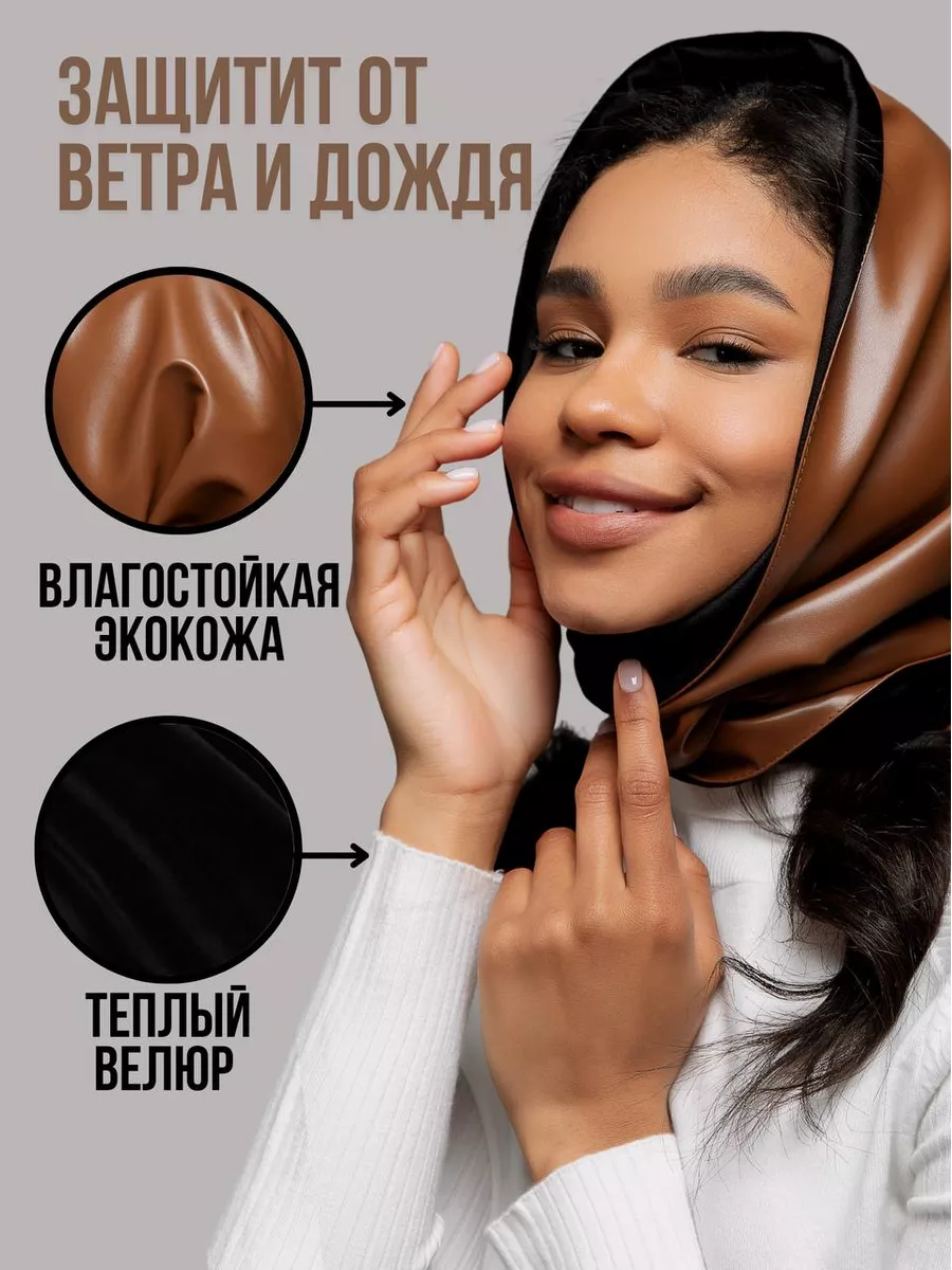 Платок шапка капор косынка кожаная зимняя утепленная экокожа