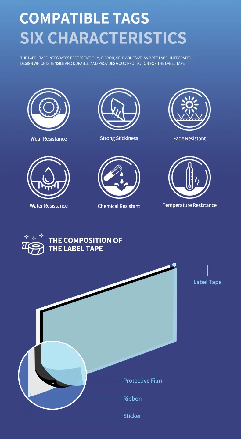 Преимущества: легко Peal, печать ясно, доказательство воды, сильный клей, высокая термостойкость, устойчивость к выцветанию, не вызывает коррозии и так далее.