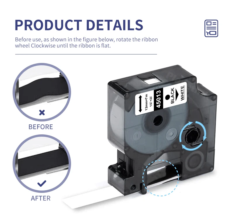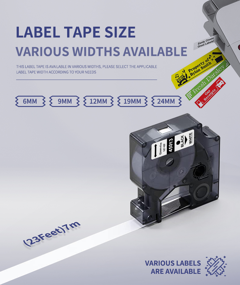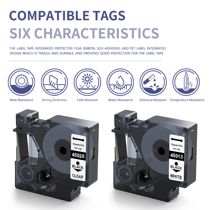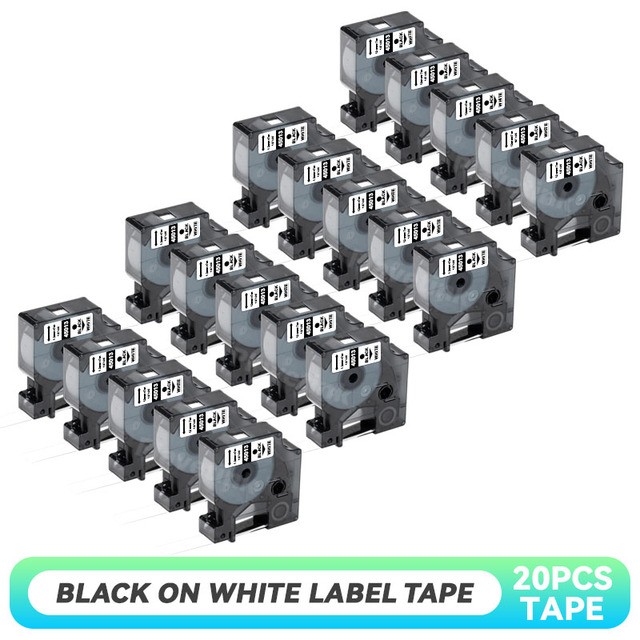 PLAVETINK 20PK Этикеточная лента 0,47 "12 мм x 7 м Совместимость с Dymo 1/2" Черный на белом 45013 45010 45015 45016 LabelManager 120P 150