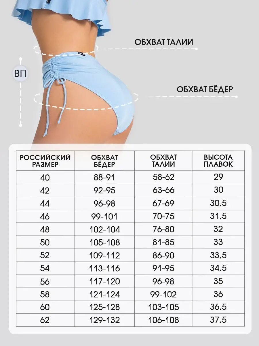 Описание: Мы - российский бренд супер удобной женской одежды! Представляем вам женские плавки – идеальный выбор для вашего купальника! Эти купальные плавки будут подчеркивать вашу женственность и стиль, а высокая посадка эффектно подчеркнет вашу талию. Плавки с завышенной посадкой идеально подходят для комфортного плавания и купания на пляже. Благодаря своему бразильяно - стилю, эти плавки создадут идеальный баланс между практичностью и элегантностью. Независимо от ваших размеров, наши плавательные трусы доступны в широком ассортименте размеров, чтобы подойти каждой женщине. Утягивающие плавки помогут вам создать идеальную фигуру на пляже. Комбинируйте их с нашим бюстгальтером для больших размеров и получите безупречный образ на пляже. С завязкой на талии, эти плавки являются не только практичным, но и стильным дополнением к вашему пляжному белью. Произведено для Вас в России с любовью! Переходите на страничку нашего бренда, там Вы найдете много классной одежды на каждый день!