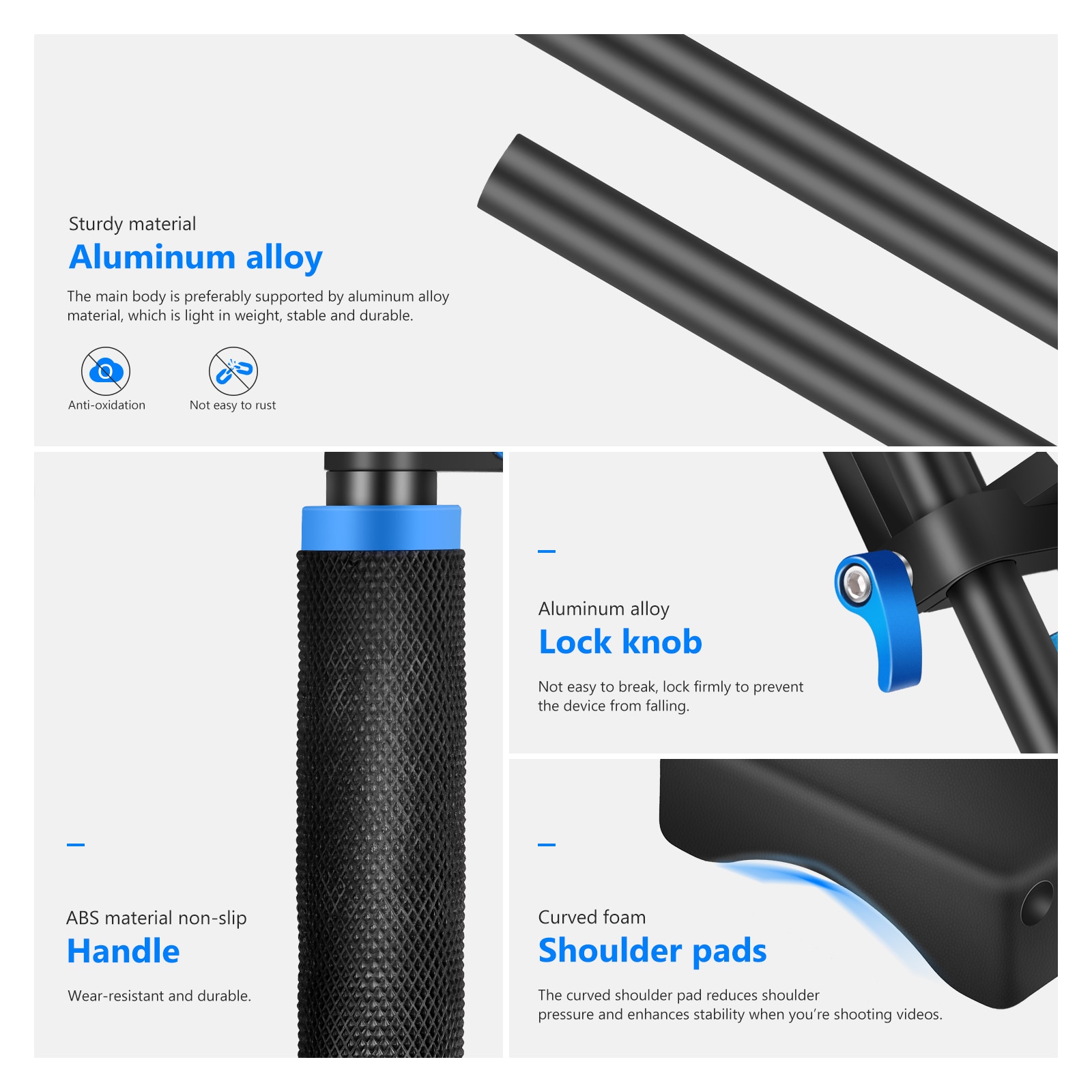 【Удобная накладка на плечо и двойные рукоятки】 Мягкая резиновая Наплечная накладка снижает давление на плечо и повышает устойчивость. Двойные рукоятки удобны для съемки с рук