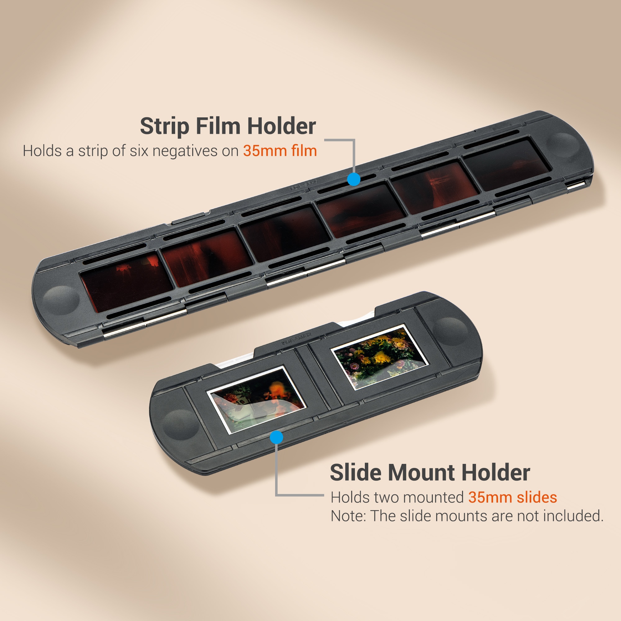 Входящий в комплект держатель пленки сохраняет негативы плоскими, что дает вашей камере наилучшую возможность получить оцифрованное изображение с высоким разрешением.